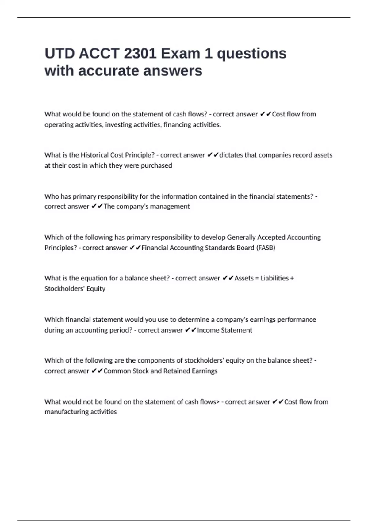 What would be found on the statement of cash flows? - correct answer ✔✔Cost flow from