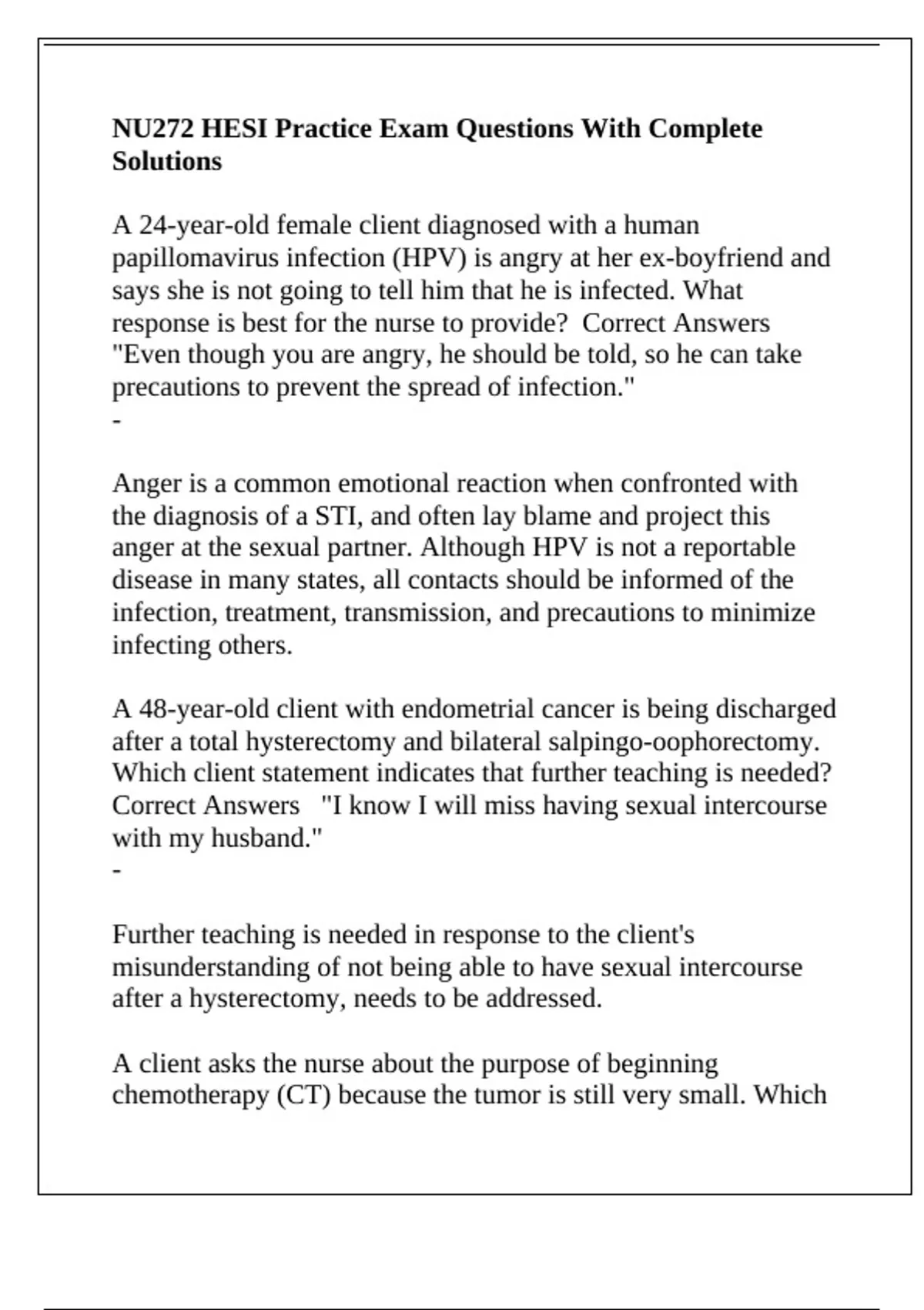 NU272 HESI Practice Exam Questions With Complete Solutions