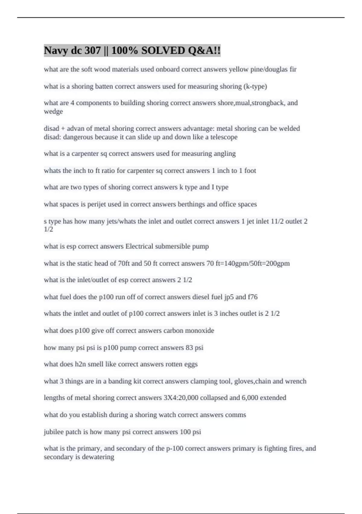 Navy dc 307 || 100% SOLVED Q&A!!