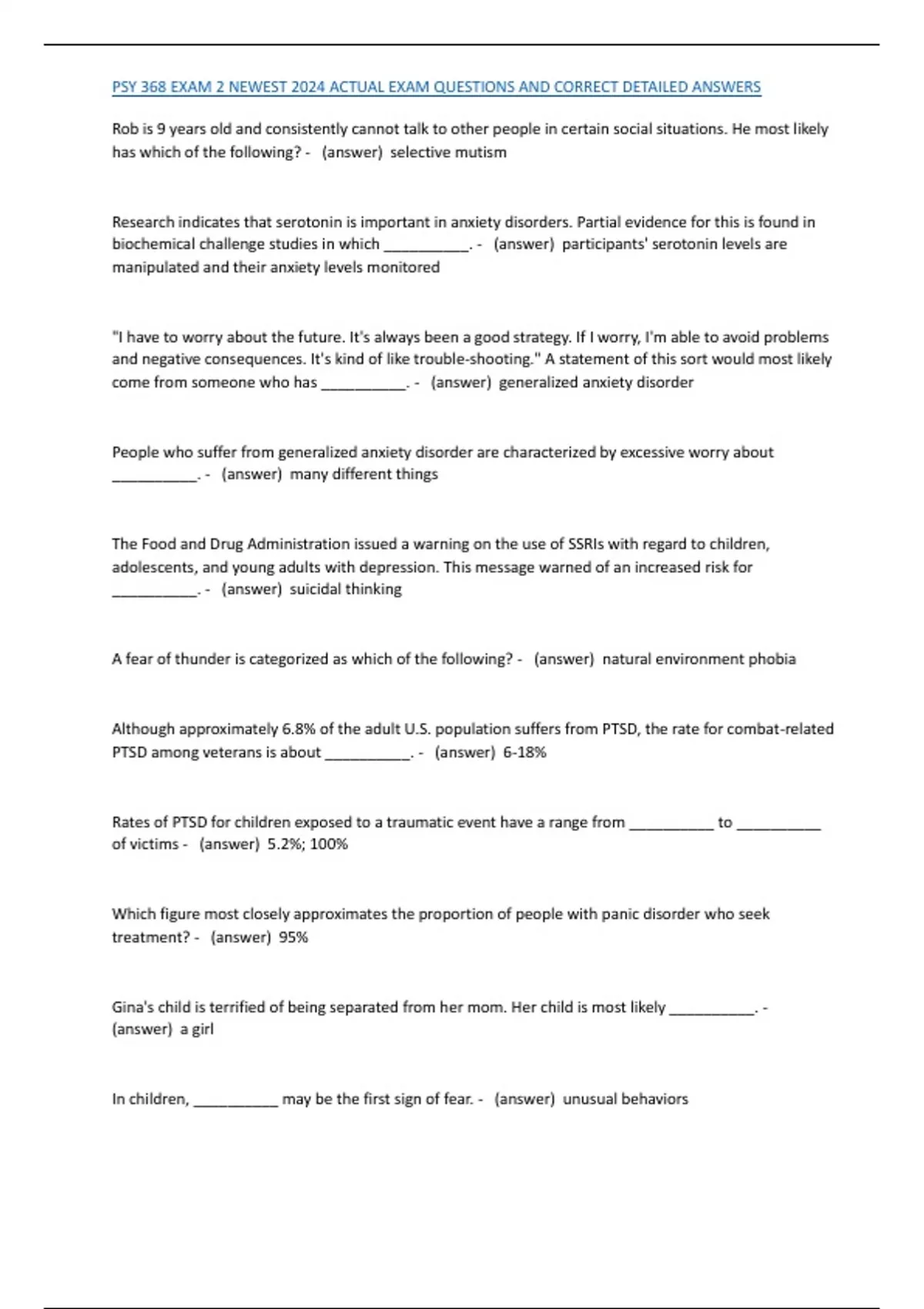 , PSY 368 EXAM 2 NEWEST 2024 ACTUAL EXAM QUESTIONS AND CORRECT DETAILED ANSWERS