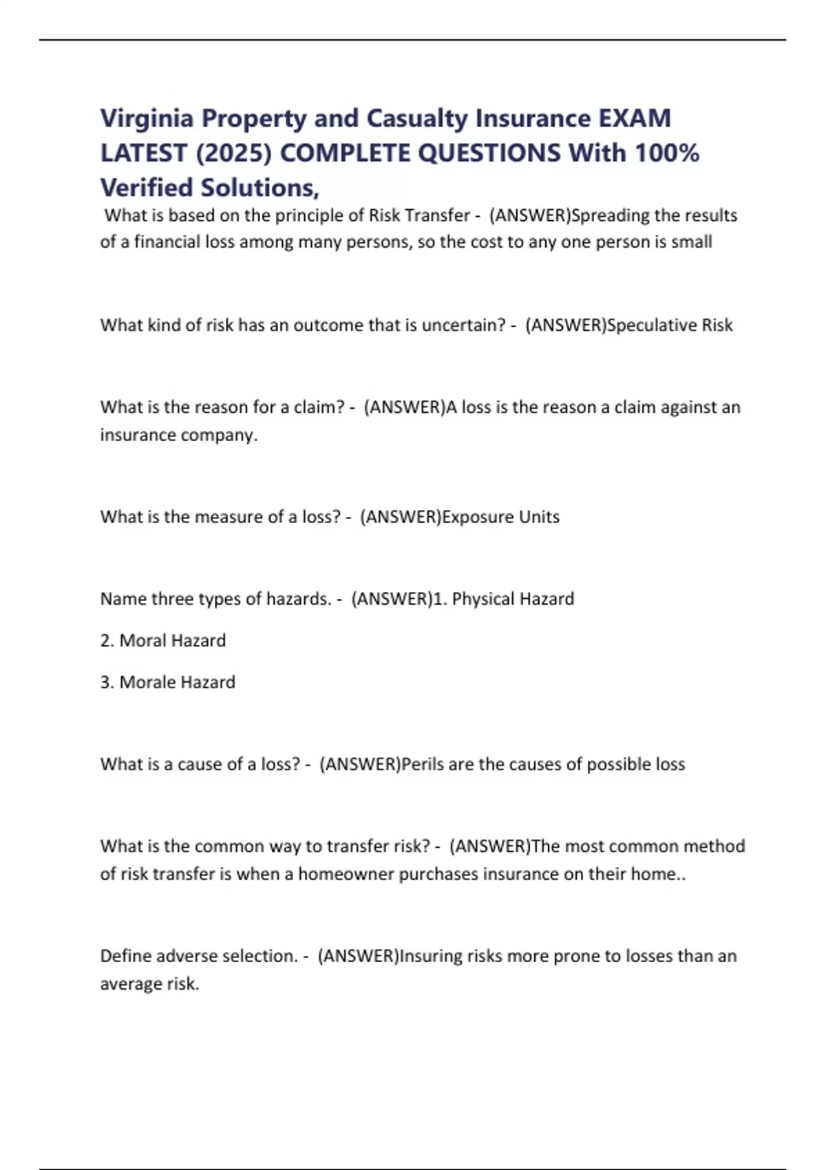 What is a cause of a loss? - (ANSWER)Perils are the causes of possible loss