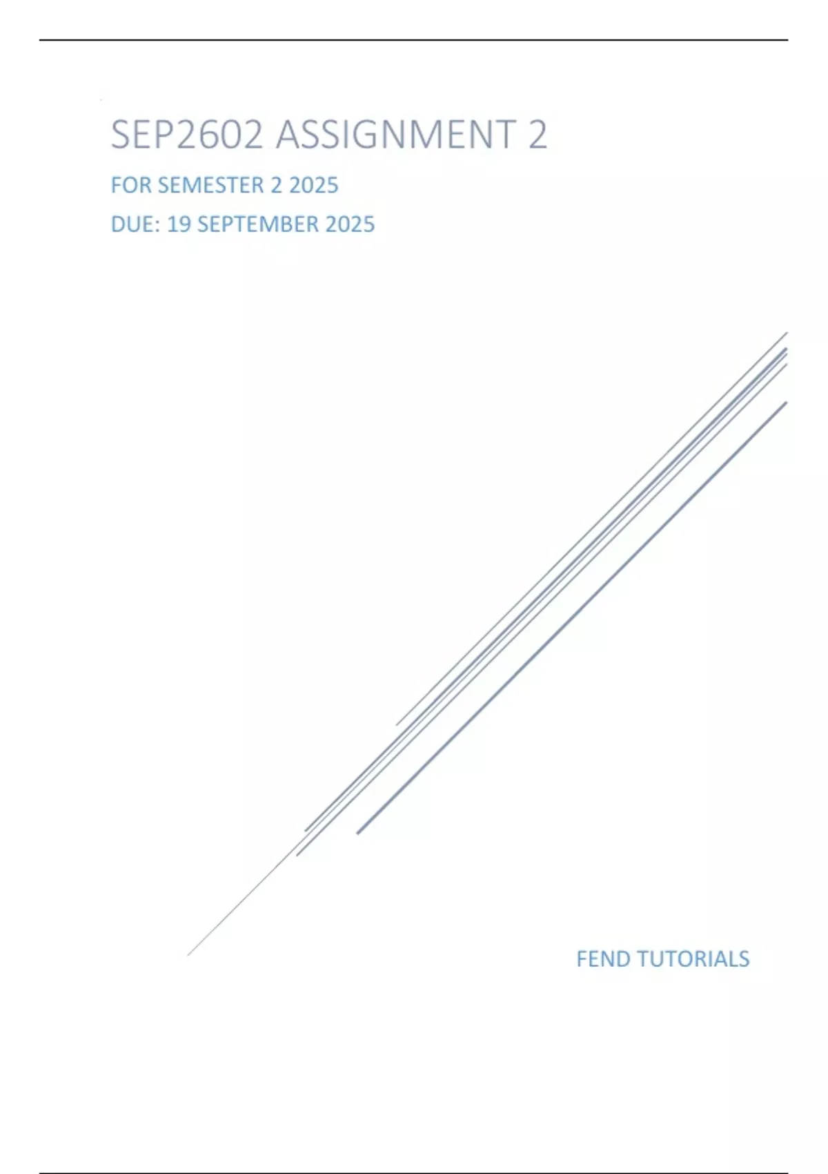 SEP2602 ASSIGNMENT 2 FOR 2ND SEMESTER 2025 - DUE 19 SEPTEMBER 2025