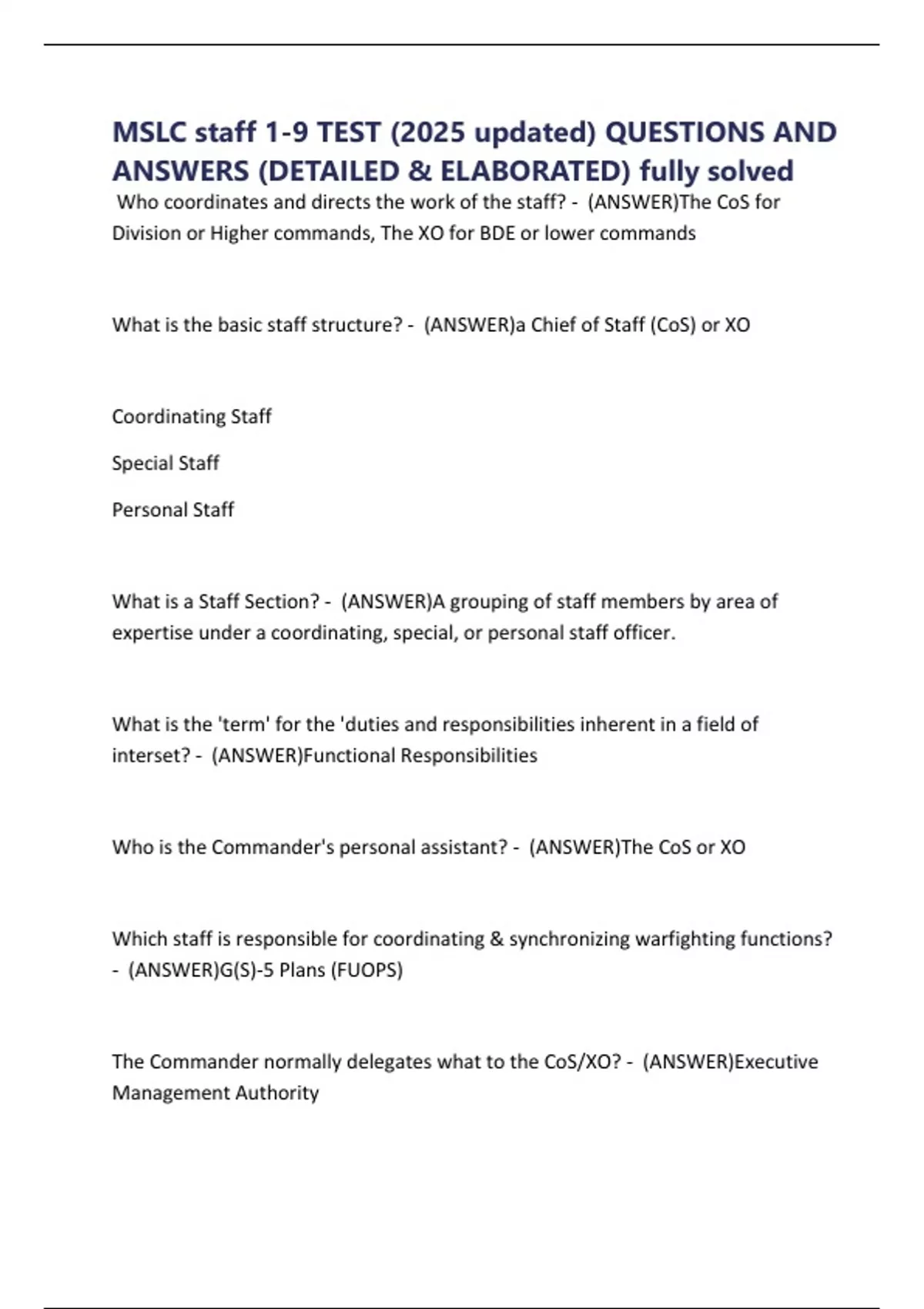 MSLC staff 1-9 TEST (2025 updated) QUESTIONS AND ANSWERS (DETAILED & ELABORATED) fully solved