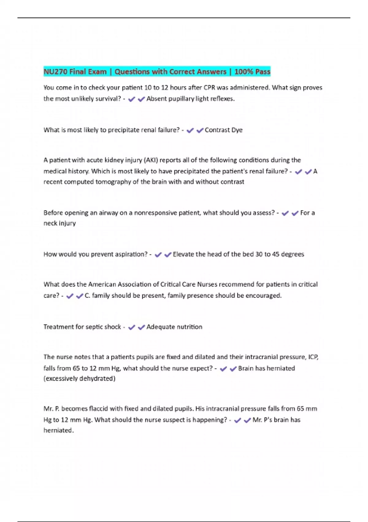 NU270 Final Exam | Questions with Correct Answers | 100% Pass
