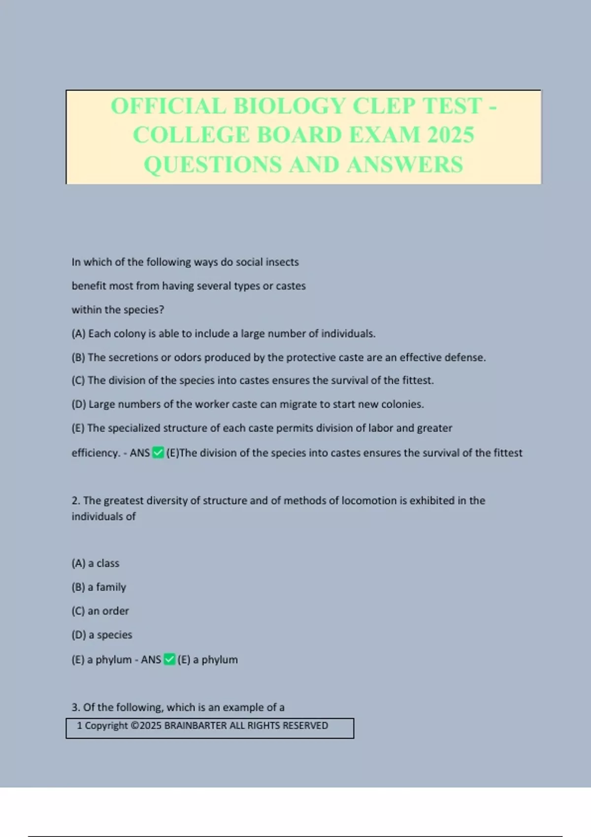 efficiency. - ANS (E)The division of the species into castes ensures the survival of the fittest