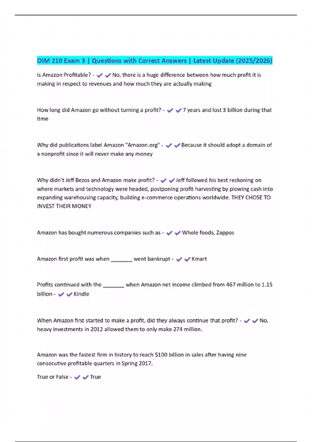OIM 210 Exam 3 | Questions with Correct Answers | Latest Update (2025/2026)