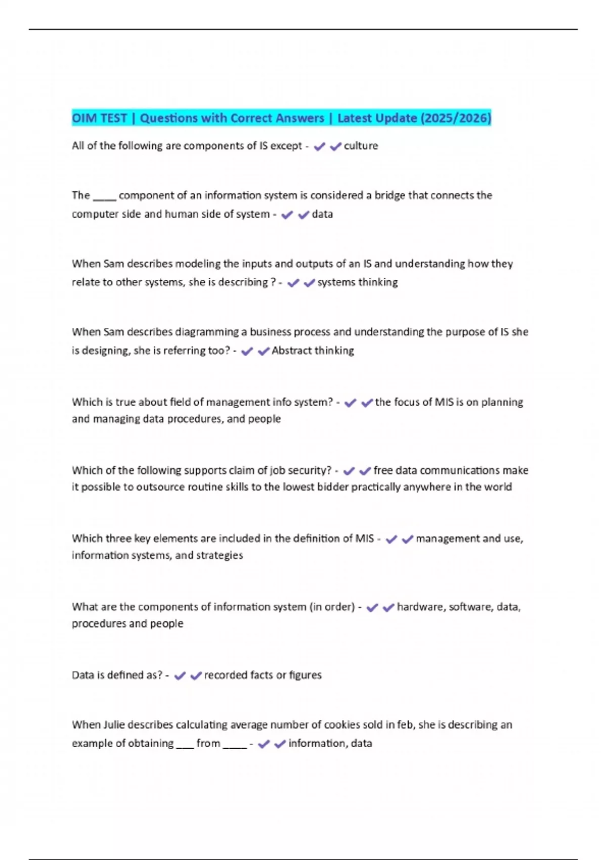 OIM TEST | Questions with Correct Answers | Latest Update (2025/2026)