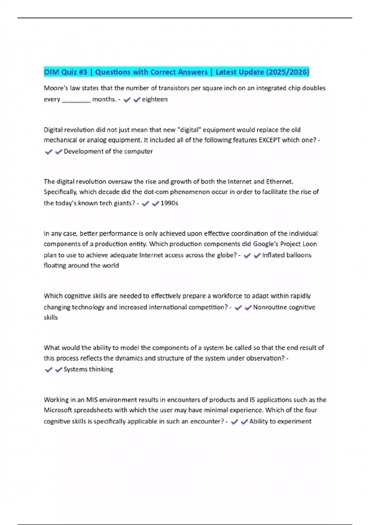 OIM Quiz #3 | Questions with Correct Answers | Latest Update (2025/2026)