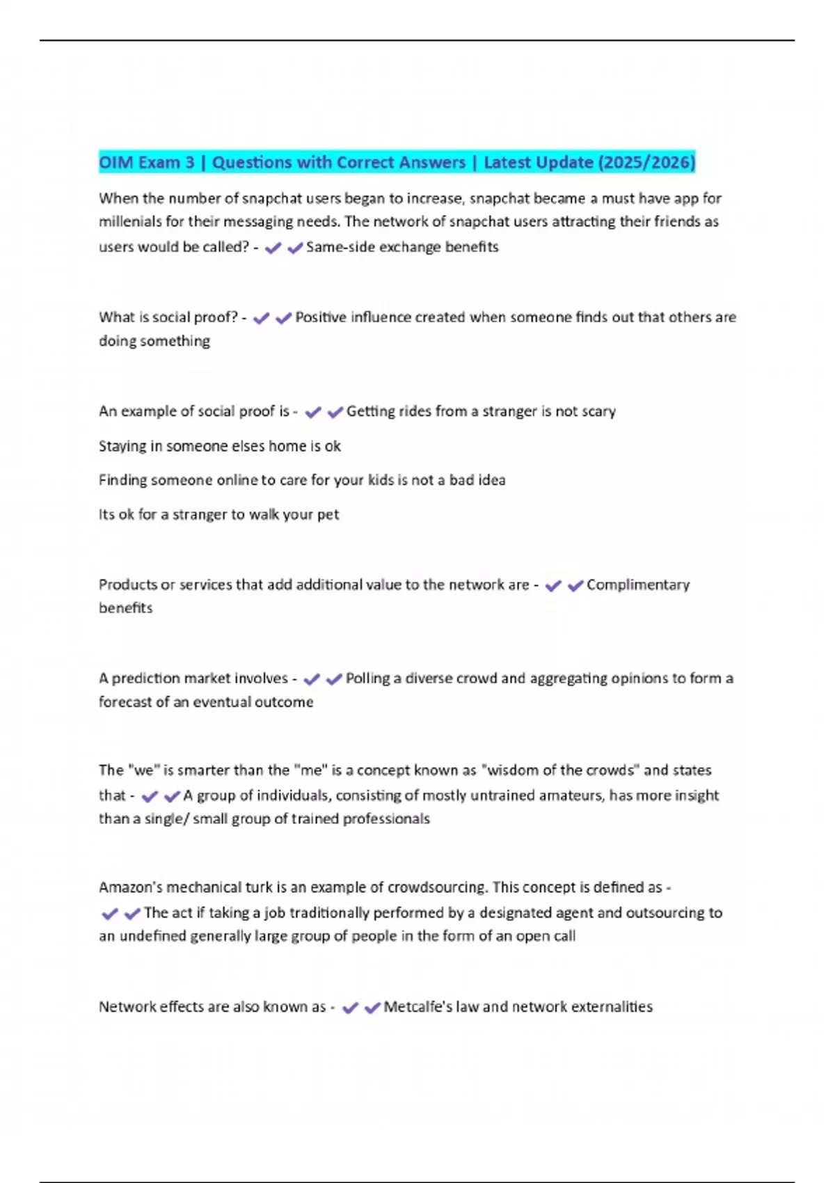 OIM Exam 3 | Questions with Correct Answers | Latest Update (2025/2026)