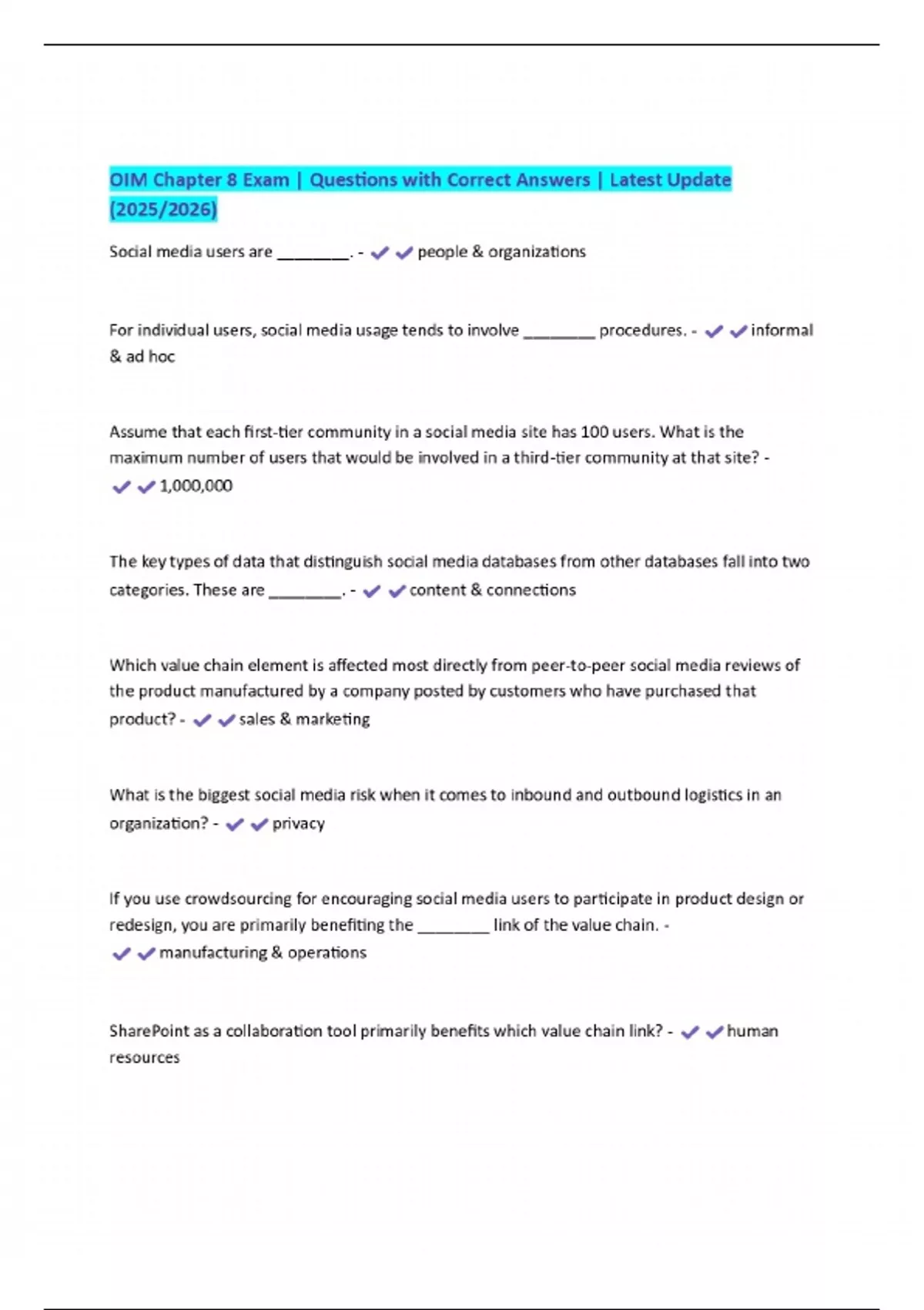 OIM Chapter 8 Exam | Questions with Correct Answers | Latest Update (2025/2026)