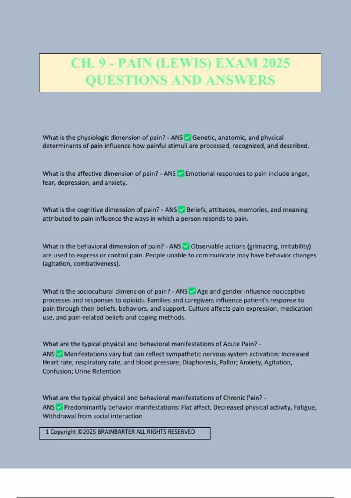 CH. 9 - PAIN (LEWIS) EXAM 2025 QUESTIONS AND ANSWERS