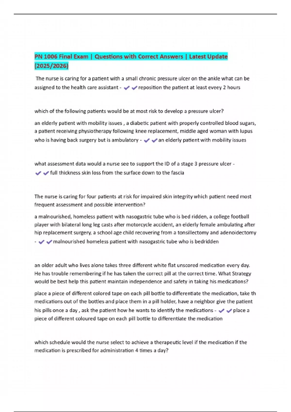 PN 1006 Final Exam | Questions with Correct Answers | Latest Update (2025/2026)