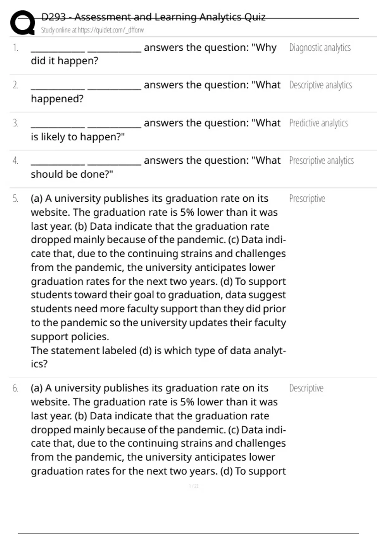, D293 - Assessment and Learning Analytics Quiz