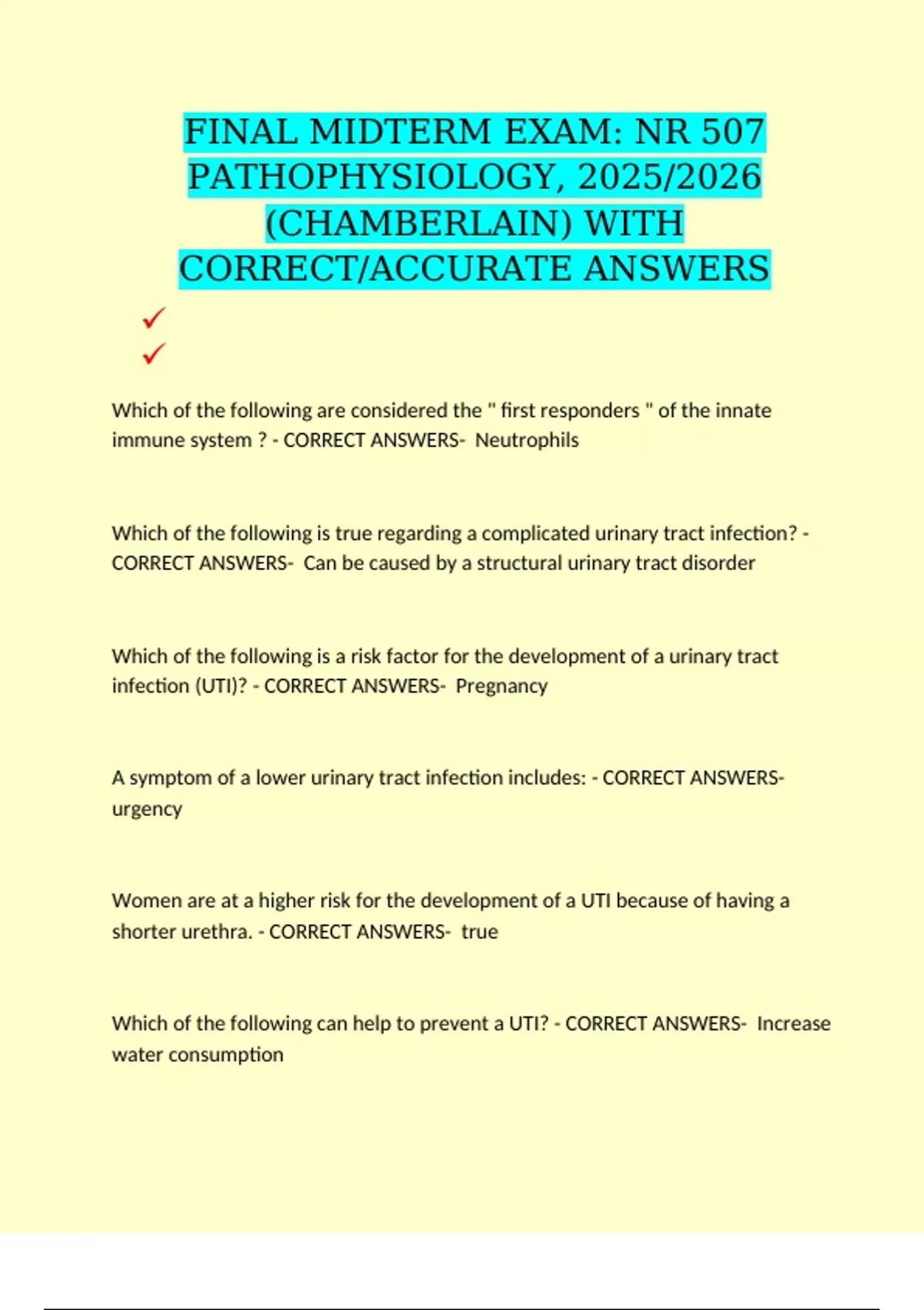 because: - CORRECT ANSWERS- The UTI responds well to a short course of