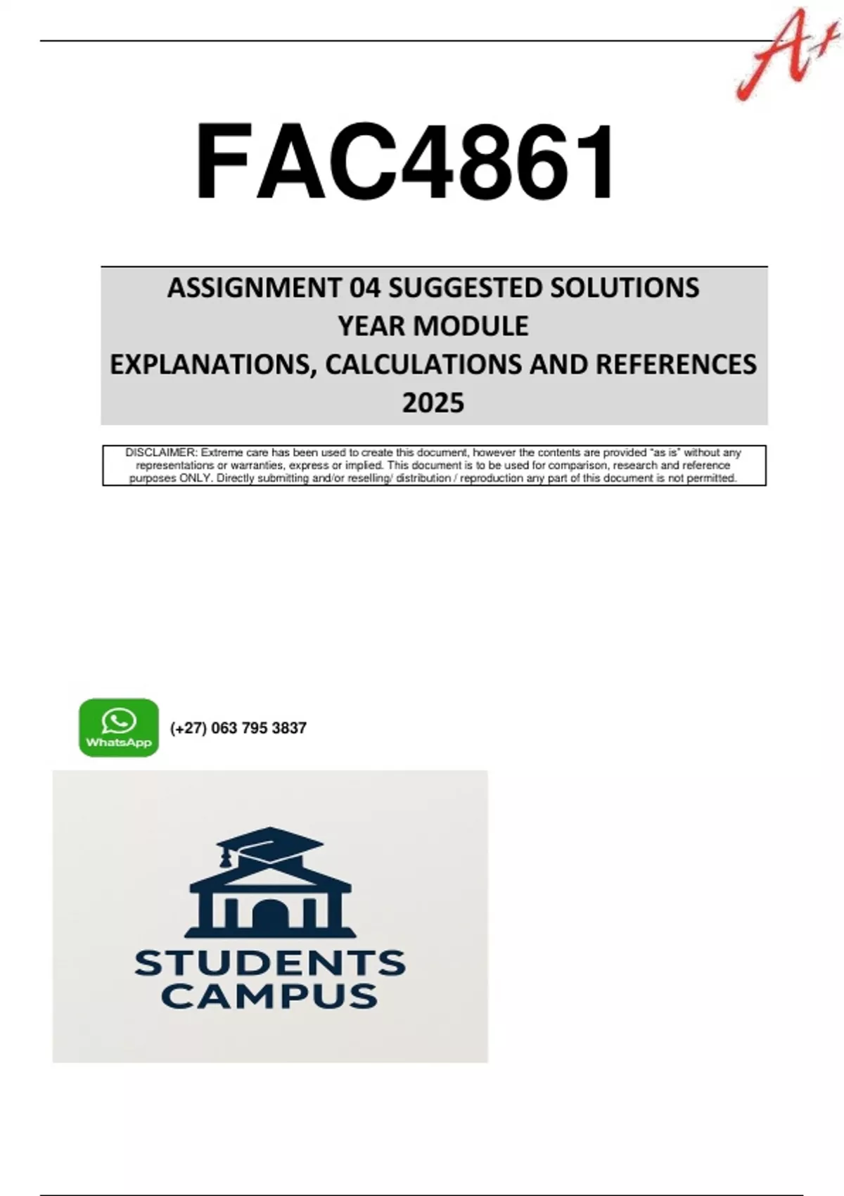 FAC4861 TEST 4(COMPLETE QUESTIONS & ANSWERS) YEAR MODULE 2025 - DUE 6 AUGUST 2025