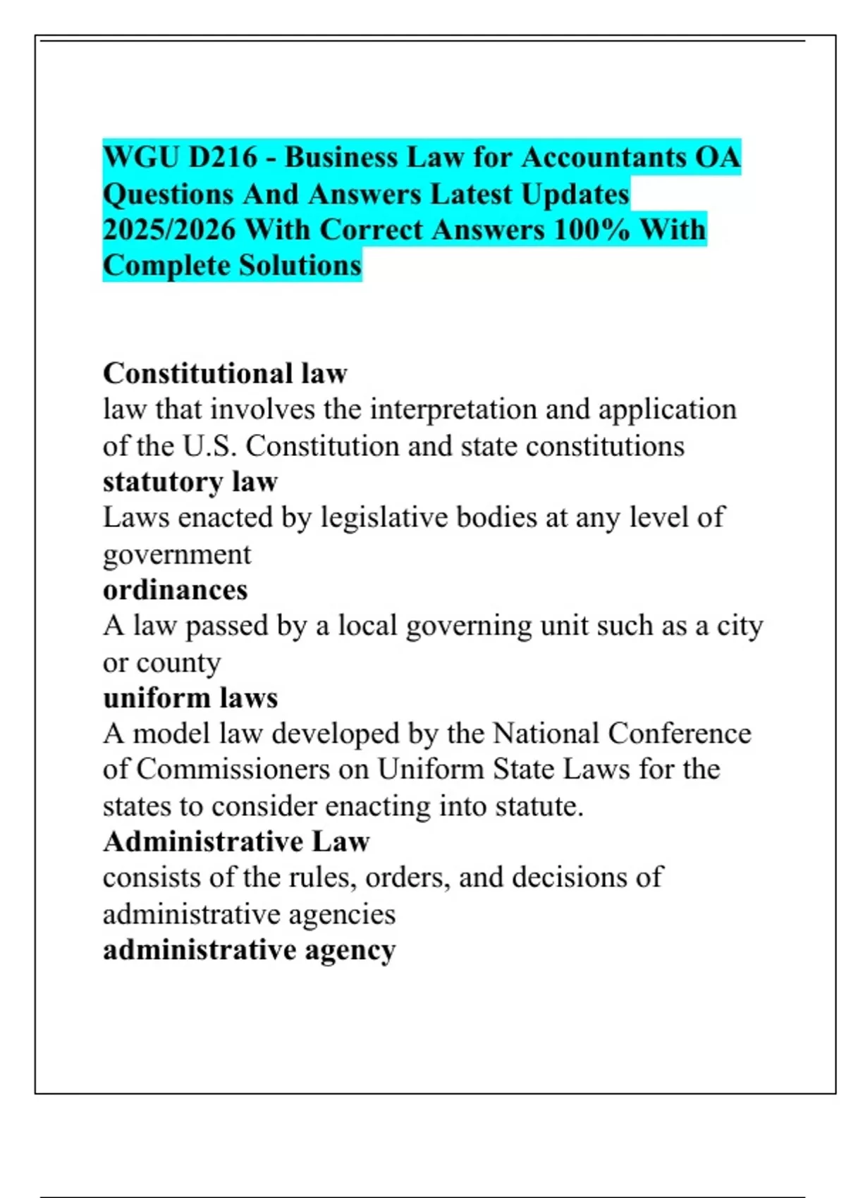 WGU D216 - Business Law for Accountants OA