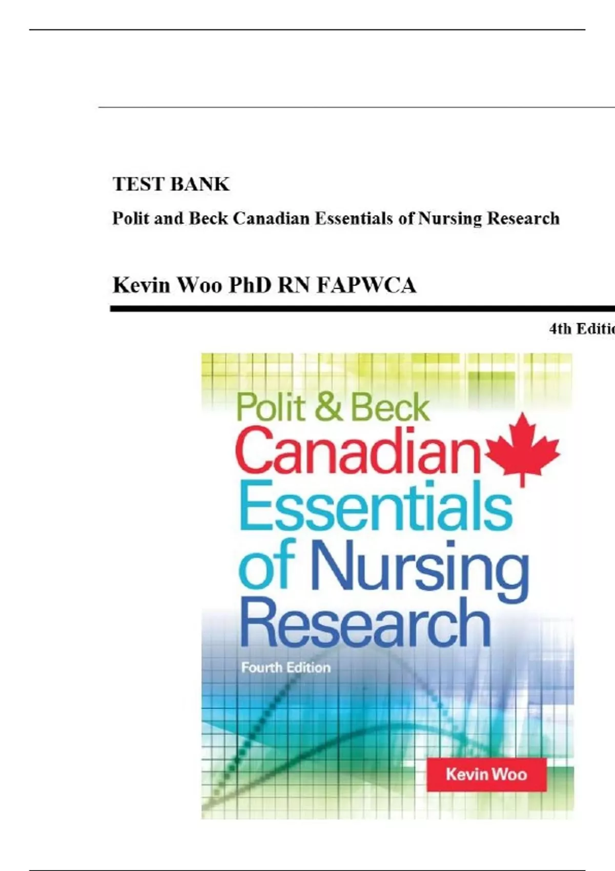 , Polit & Beck Canadian Essentials of Nursing Research 4th Edition Woo Test