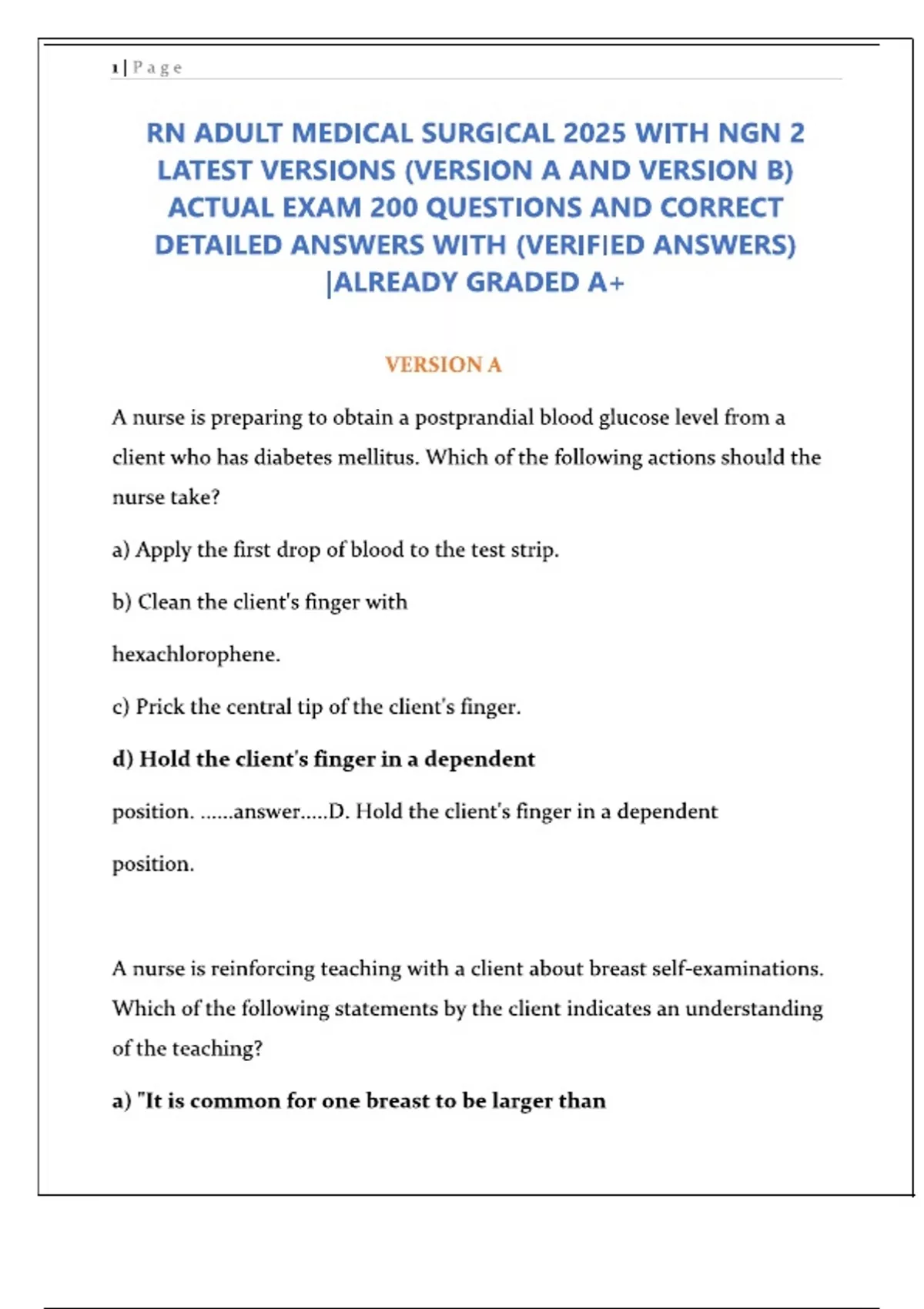 RN ADULT MEDICAL SURGICAL 2025 WITH NGN 2 LATEST VERSIONS