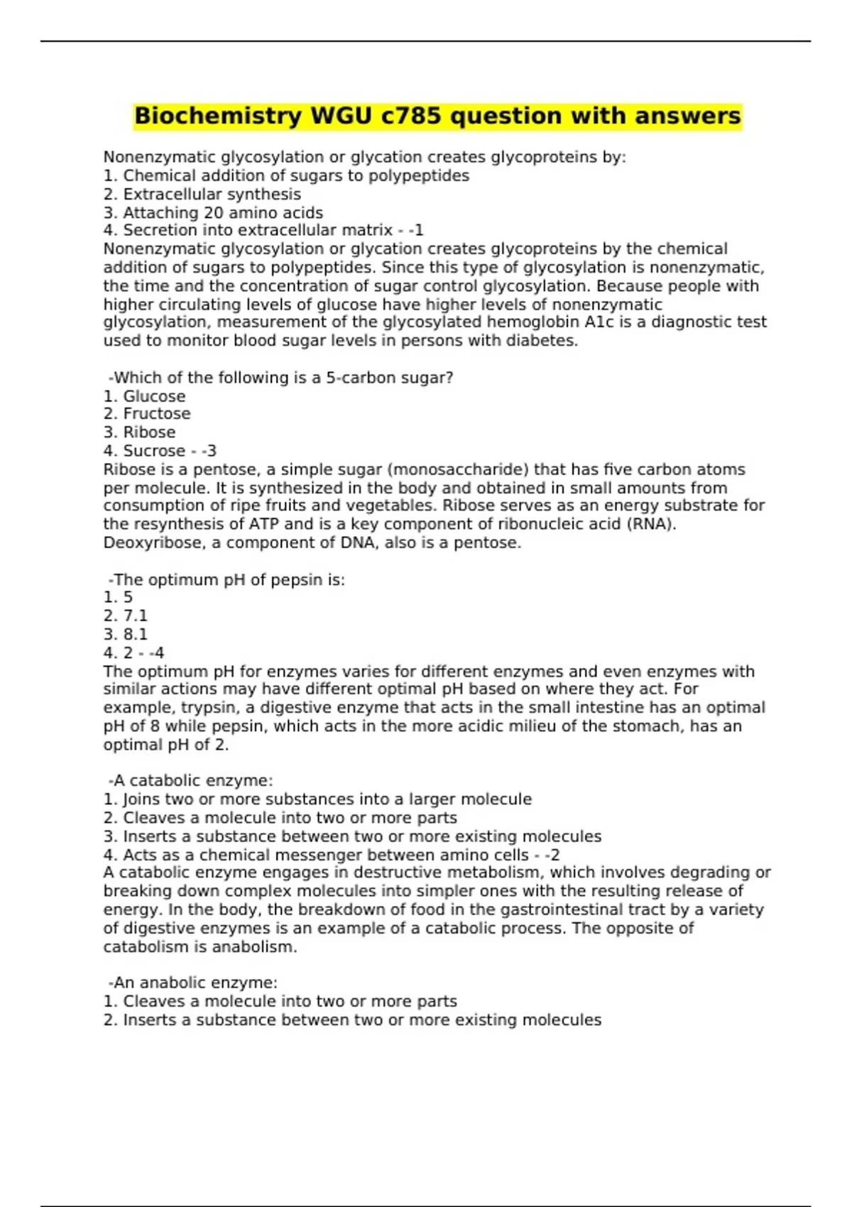 Biochemistry WGU c785 question with answers