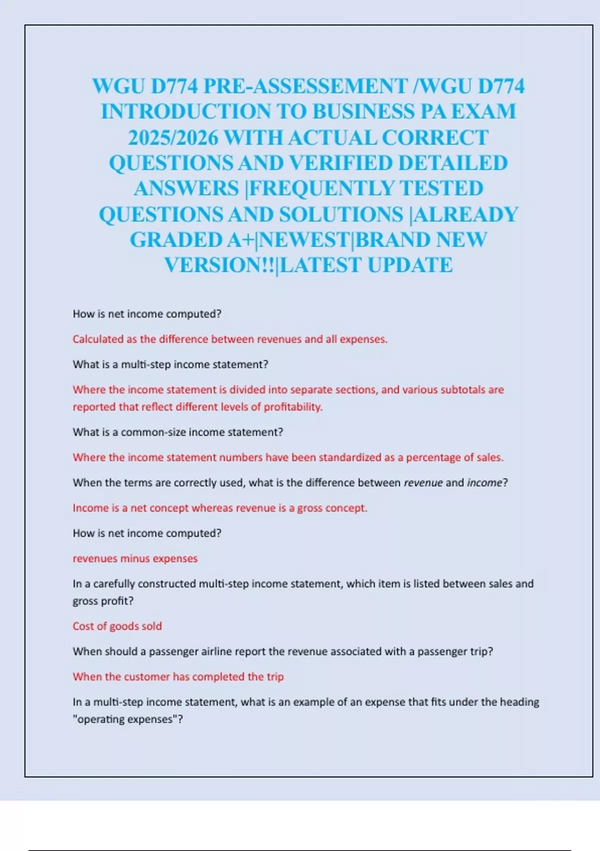 QUESTIONS AND VERIFIED DETAILED