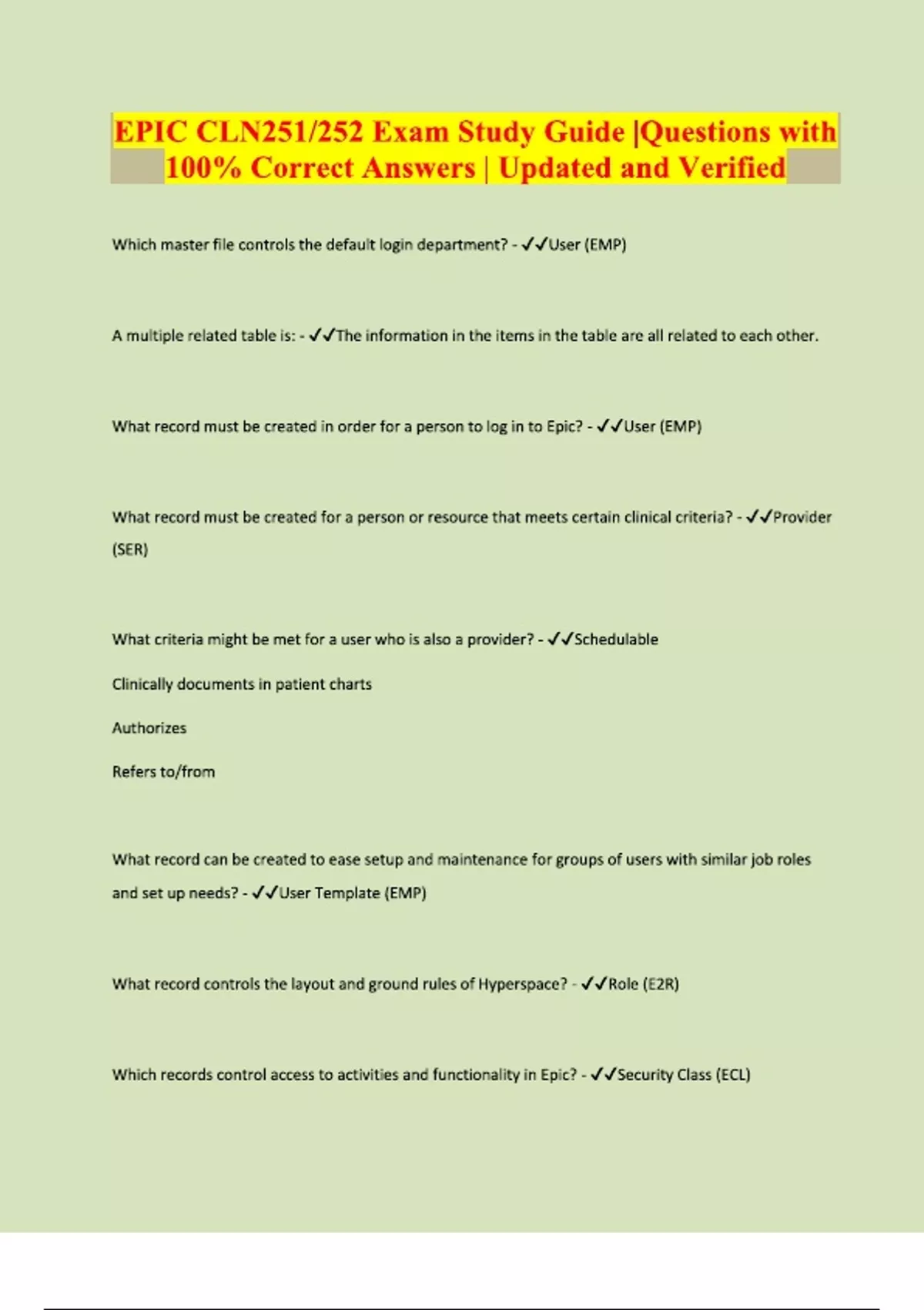 EPIC CLN 251/252 ACTUAL EXAM QUESTIONS WITH SOLUTIONS A+ 2025/2026