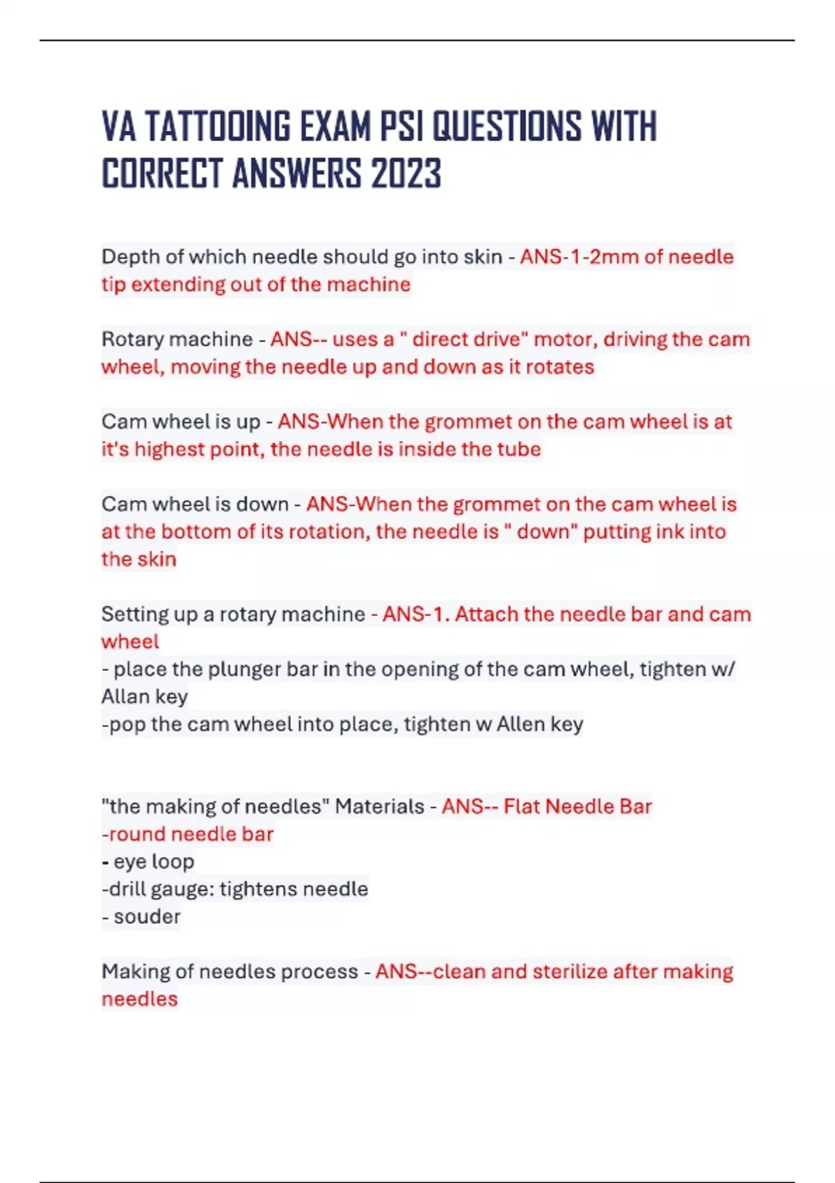 Va tattooing exam psi questions with correct answers 2025