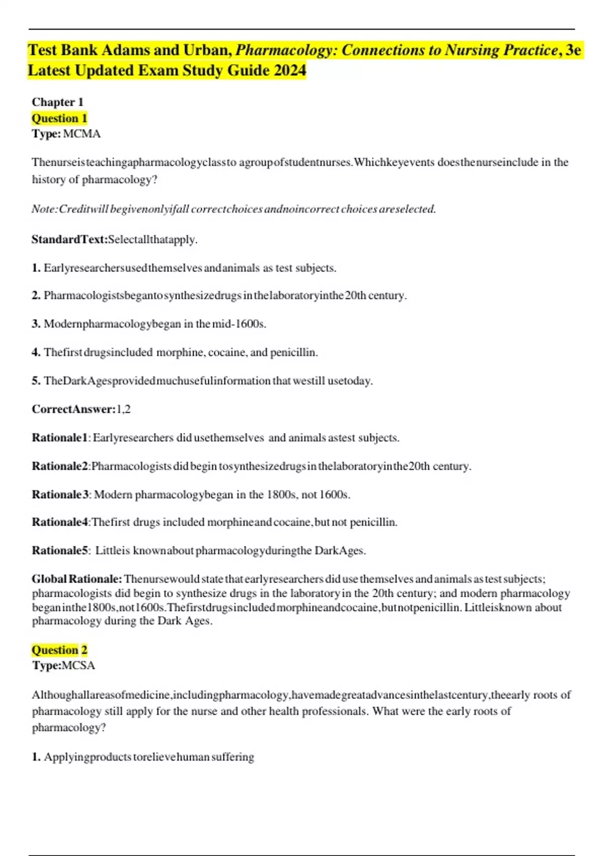 , TestBankAdamsandUrban,Pharmacology:ConnectionstoNursingPractice,3eLatest