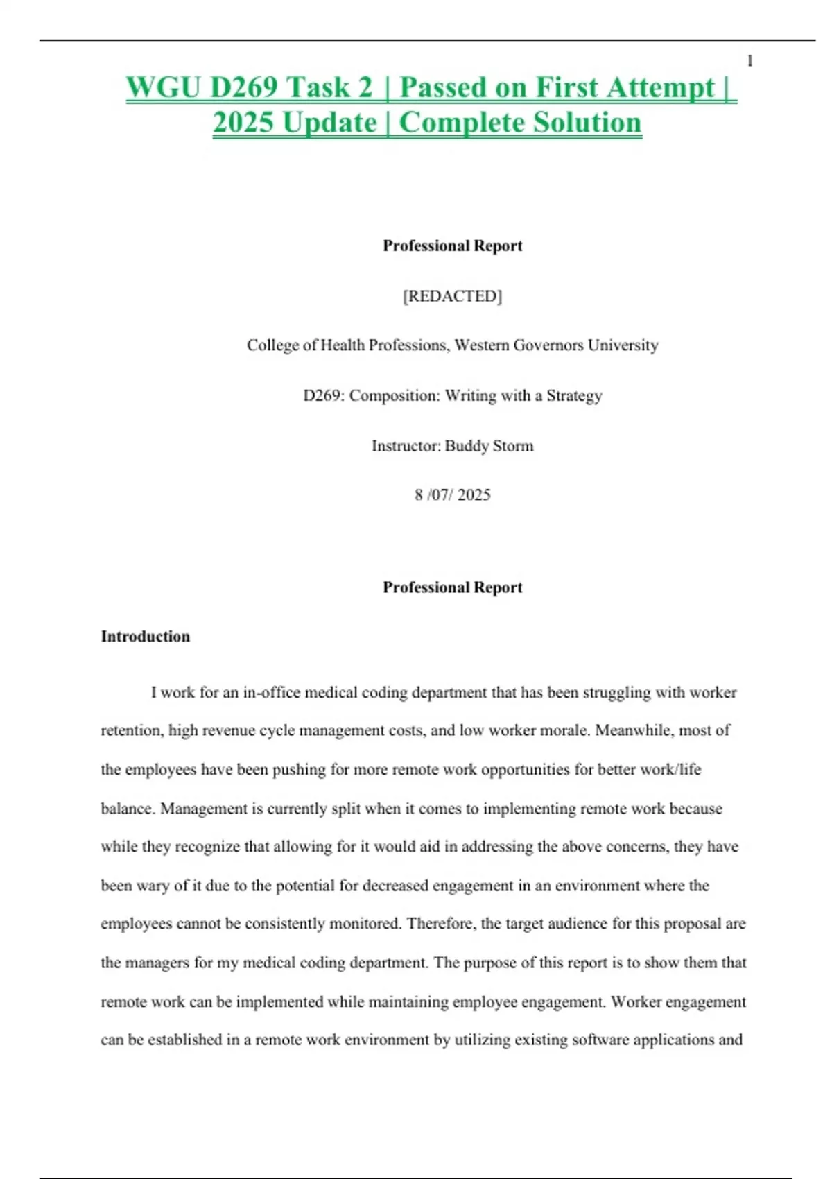 WGU D269 Task 2 | Passed on First Attempt | 2025 Update | Complete Solution