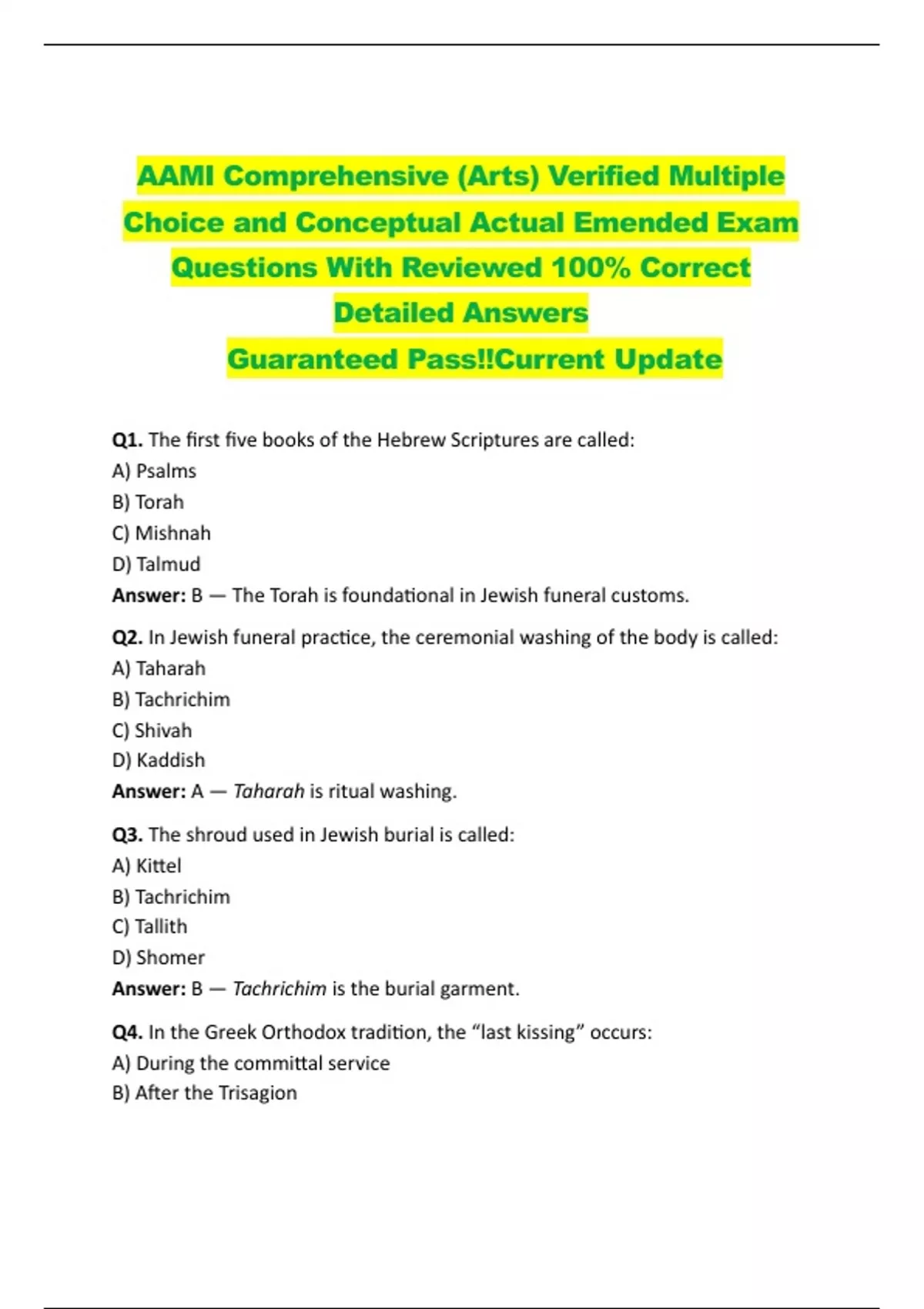 Q2. In Jewish funeral practice, the ceremonial washing of the body is called: