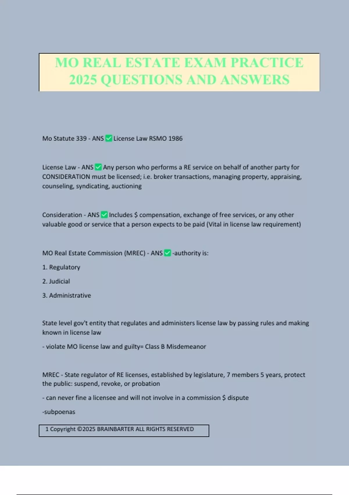 MO Real Estate Commission (MREC) - ANS -authority is: