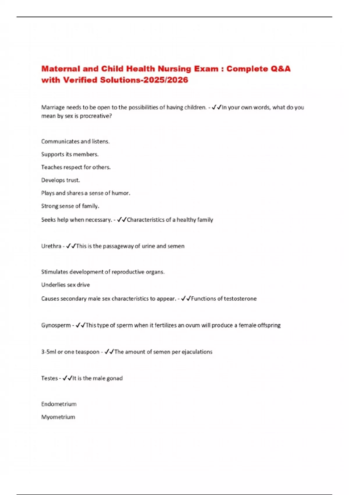 Maternal and Child Health Nursing Exam : Complete Q&A with Verified Solutions-2025/2026