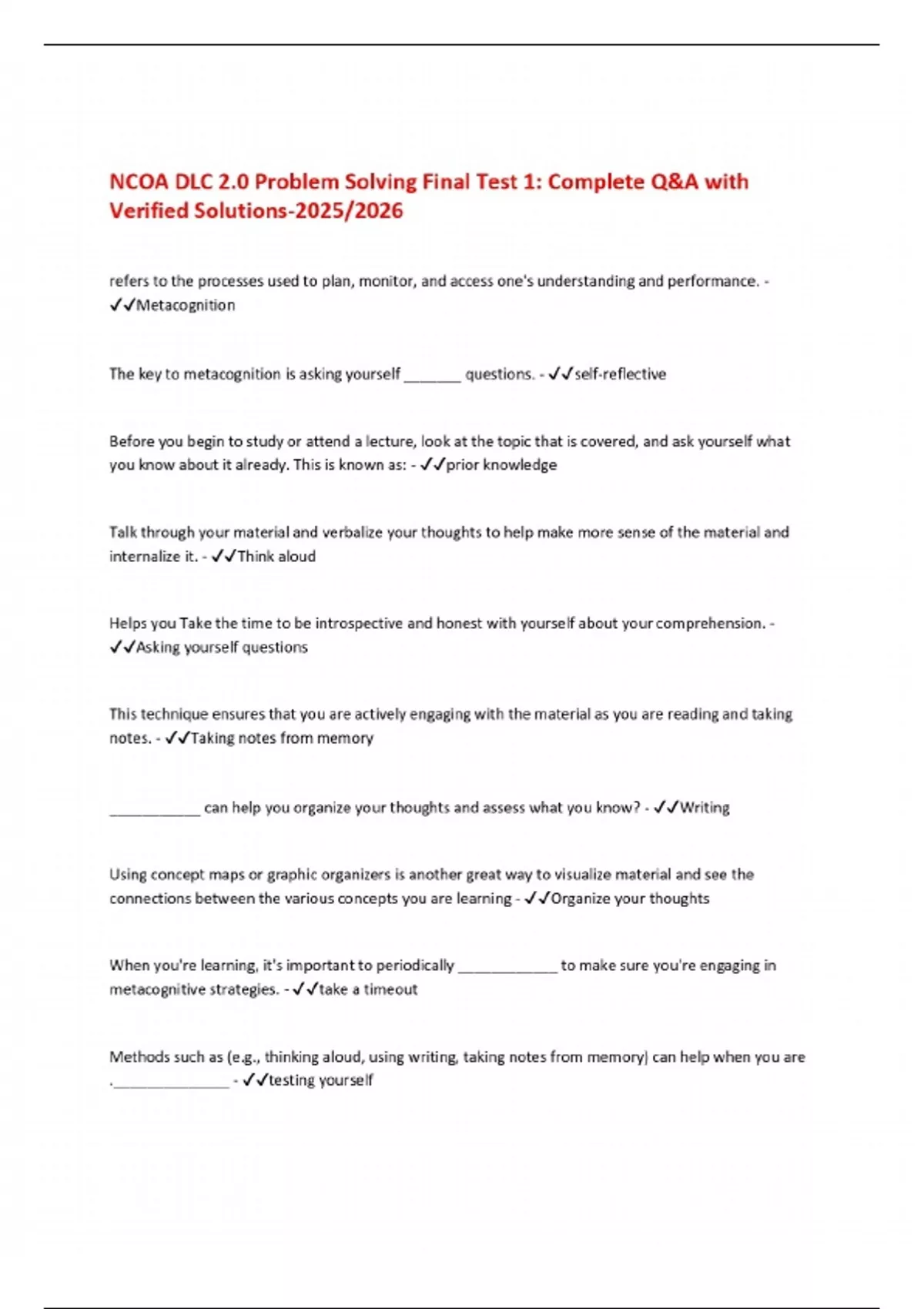 NCOA DLC 2.0 Problem Solving Final Test 1: Complete Q&A with Verified Solutions-2025/2026