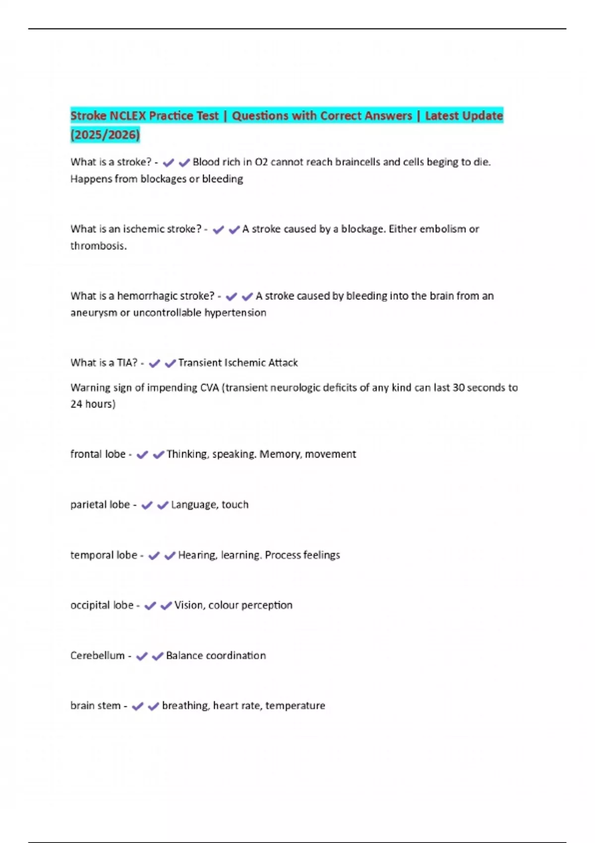 Stroke NCLEX Practice Test | Questions with Correct Answers | Latest Update (2025/2026)
