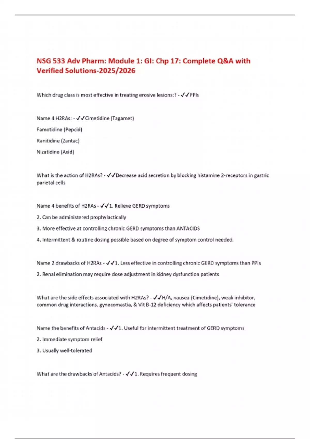 NSG 533 Adv Pharm: Module 1: GI: Chp 17: Complete Q&A with Verified Solutions-2025/2026