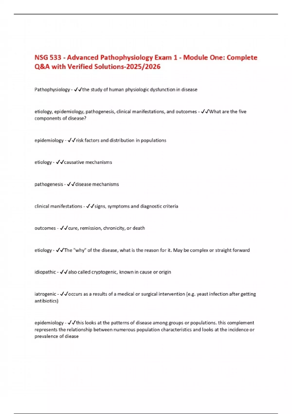 NSG 533 - Advanced Pathophysiology Exam 1 - Module One: Complete Q&A with Verified Solutions-2025/2026