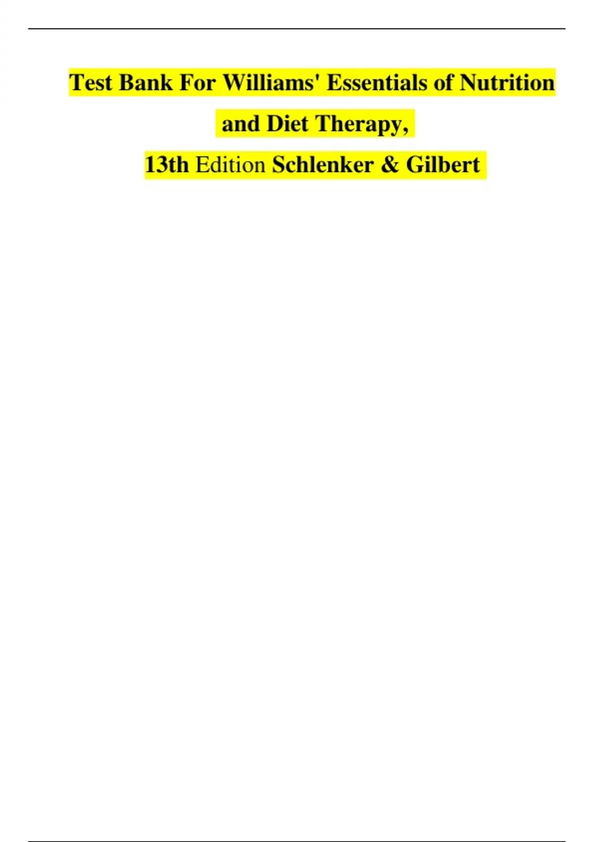 Test Bank For Williams' Essentials of Nutrition
