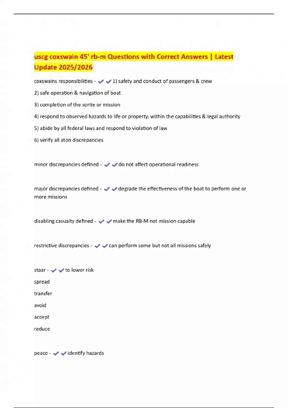 uscg coxswain 45' rb-m Questions with Correct Answers | Latest Update 2025/2026