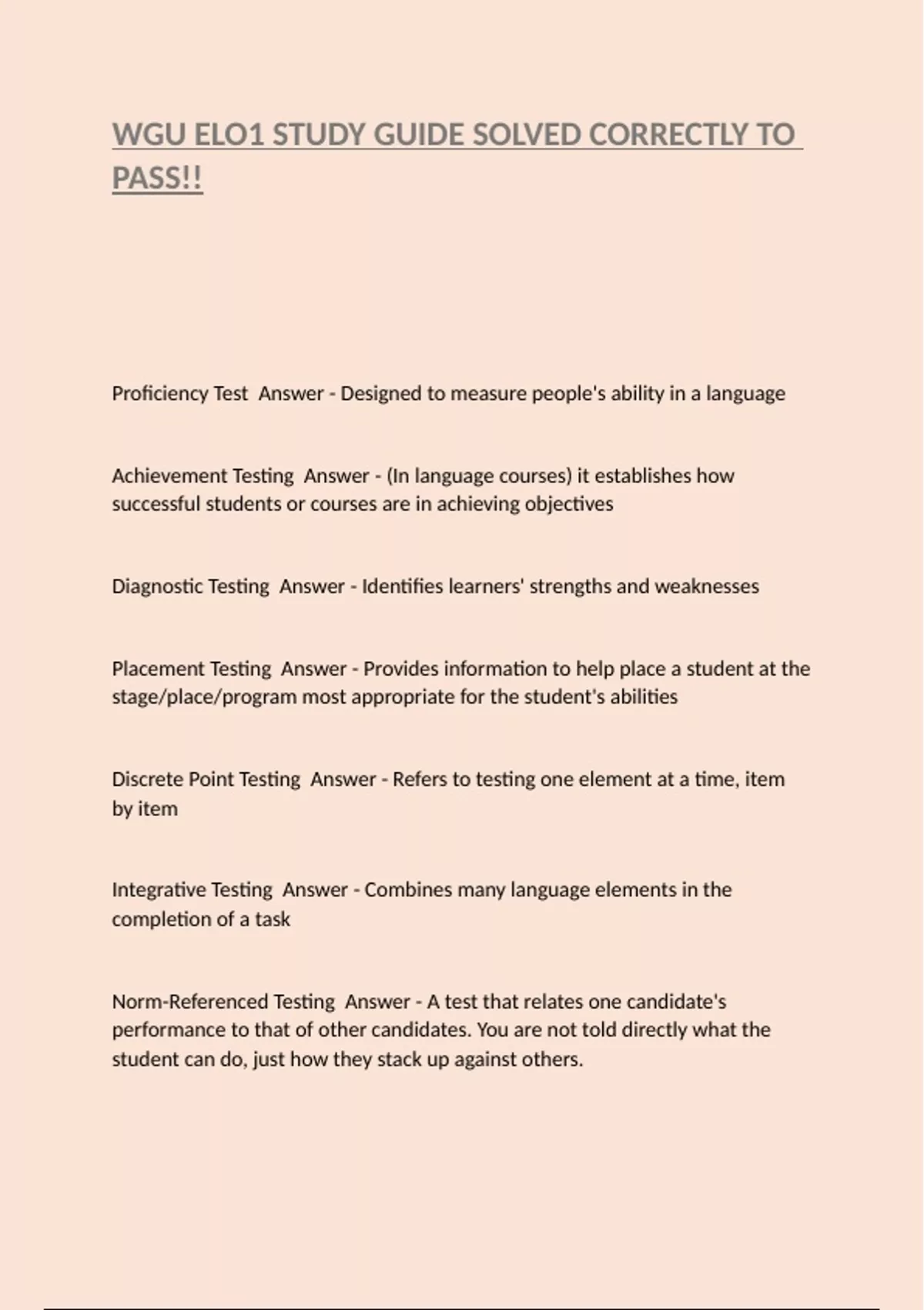 Achievement Testing Answer - (In language courses) it establishes how