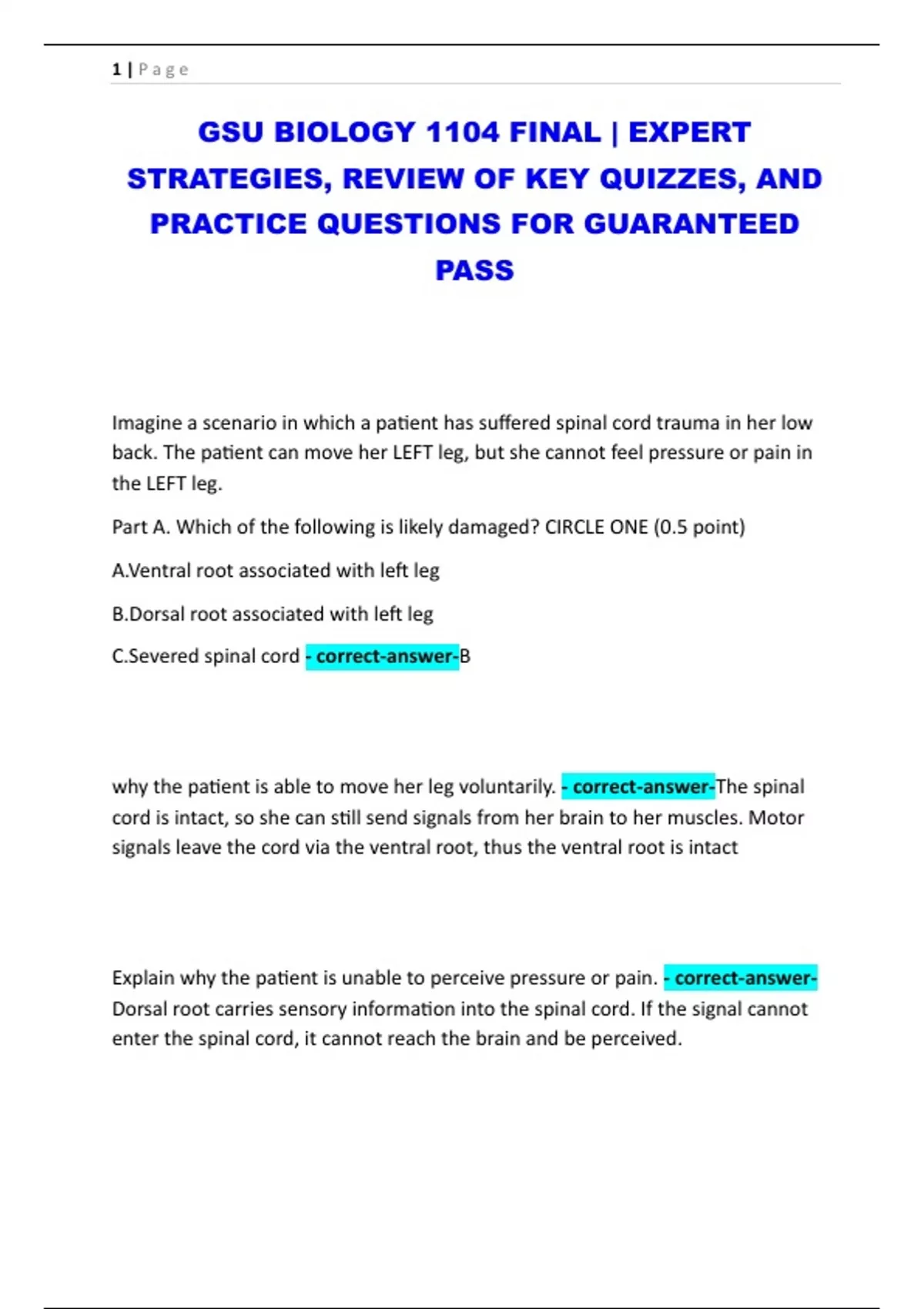 GSU BIOLOGY 1104 FINAL | EXPERT