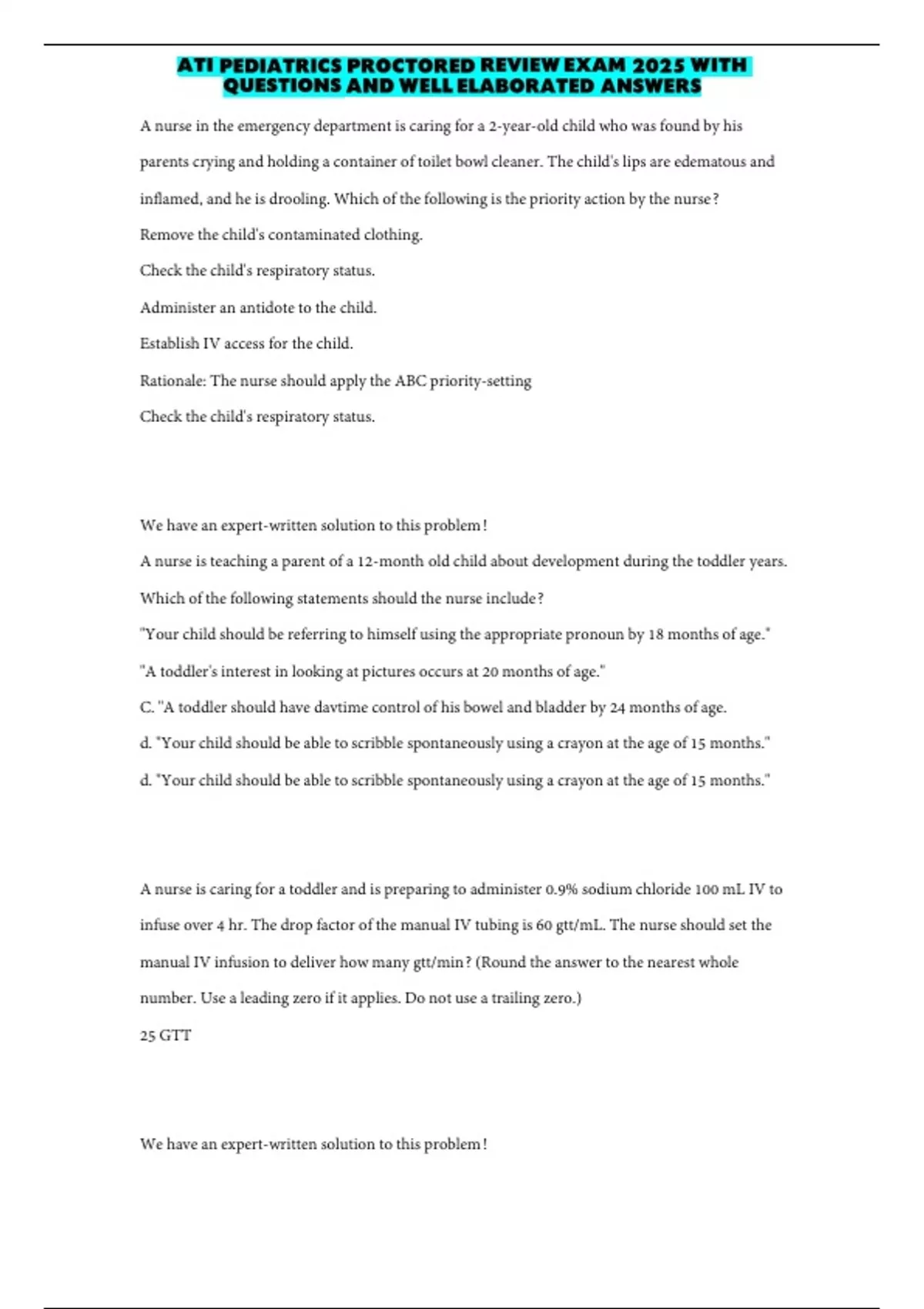 ,4. A nurse in a pediatric clinic is assessing a toddler at a well-child visit. Which of the following