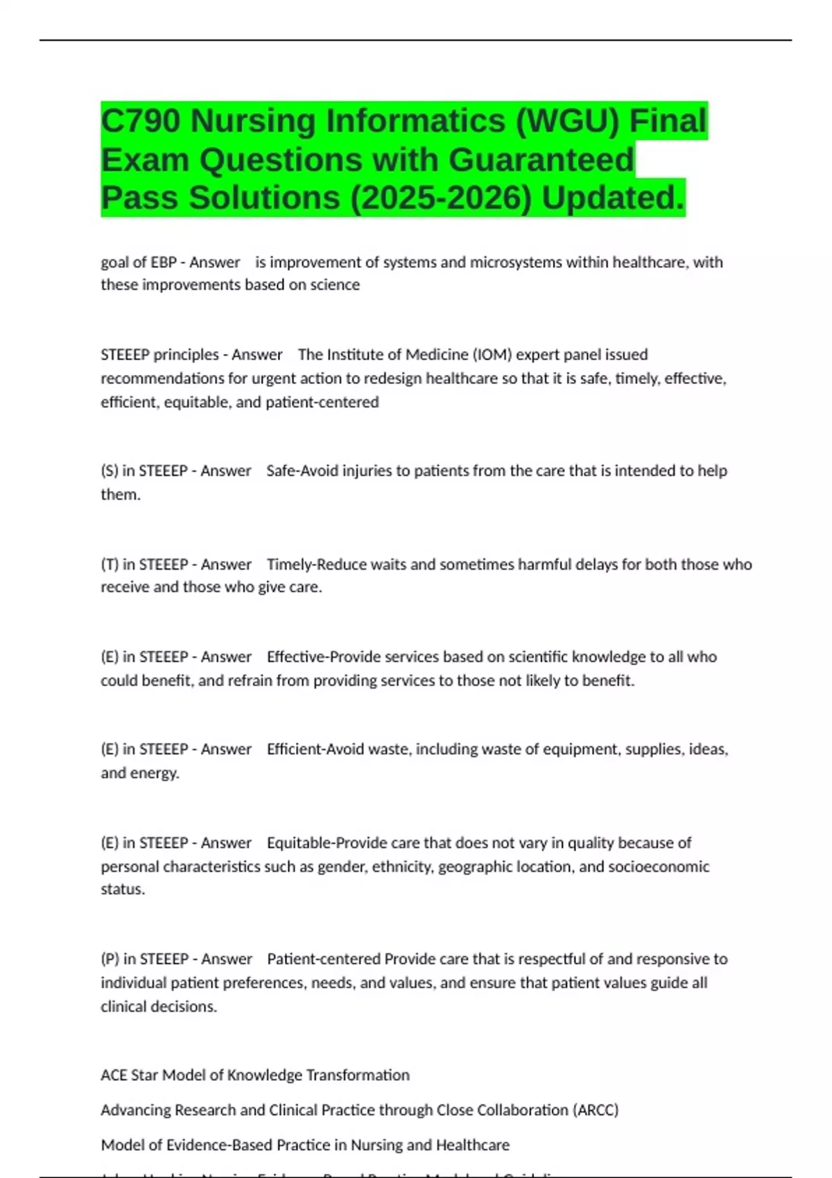 STEEEP principles - Answer The Institute of Medicine (IOM) expert panel issued