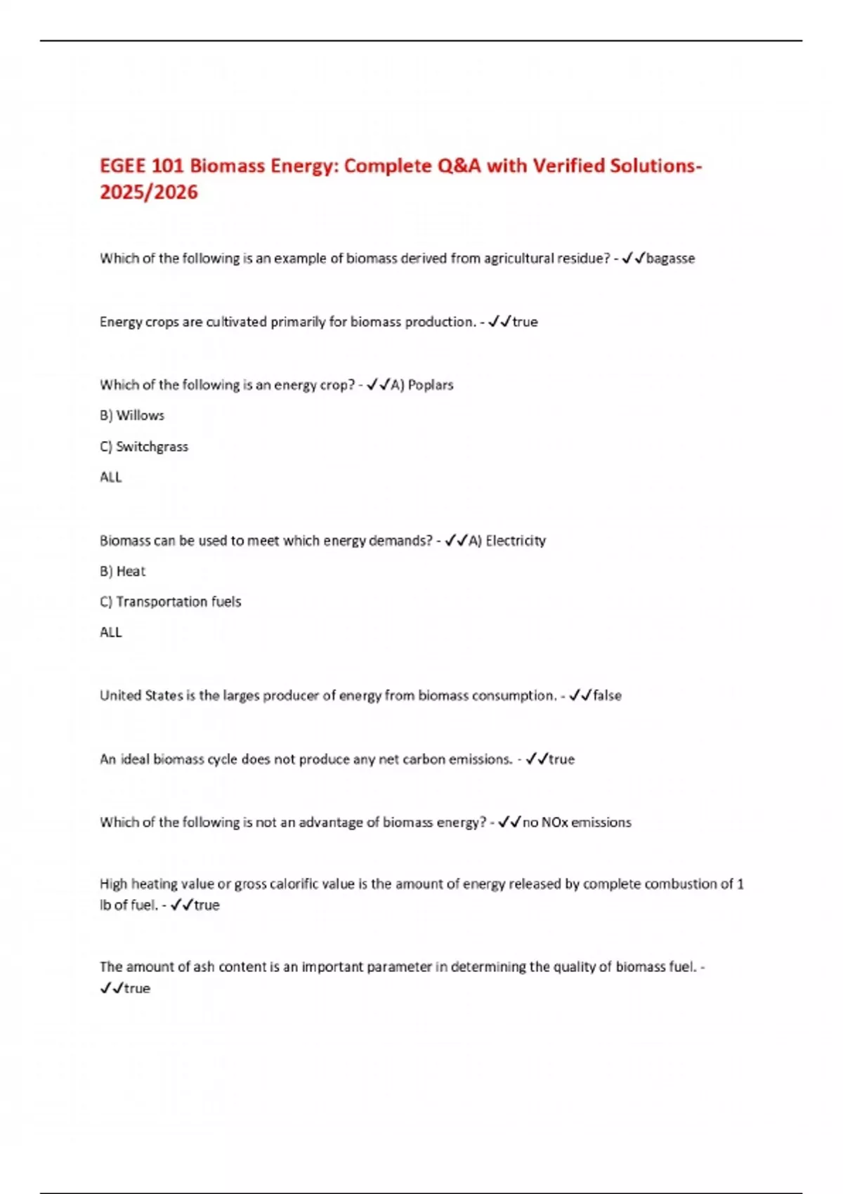 EGEE 101 Biomass Energy: Complete Q&A with Verified Solutions 2025/2026