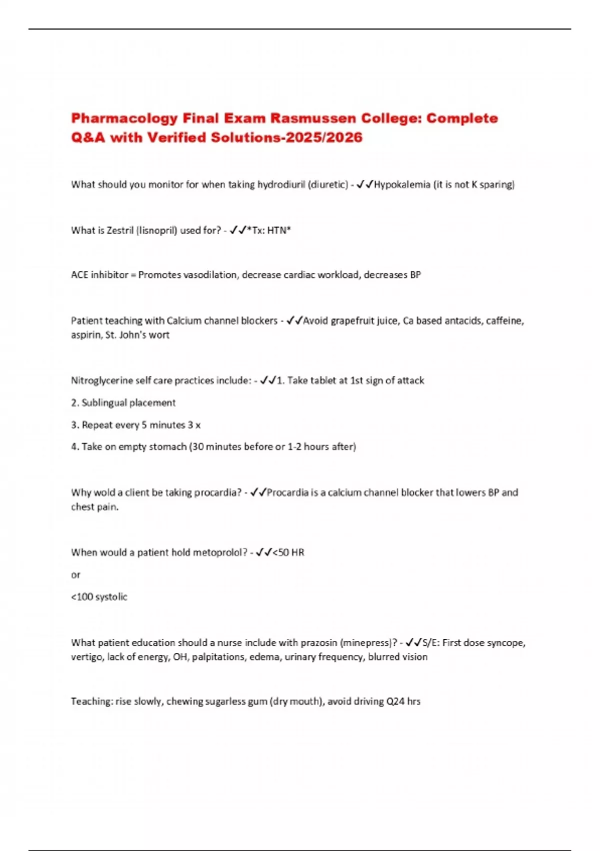 Pharmacology Final Exam Rasmussen College: Complete Q&A with Verified Solutions-2025/2026