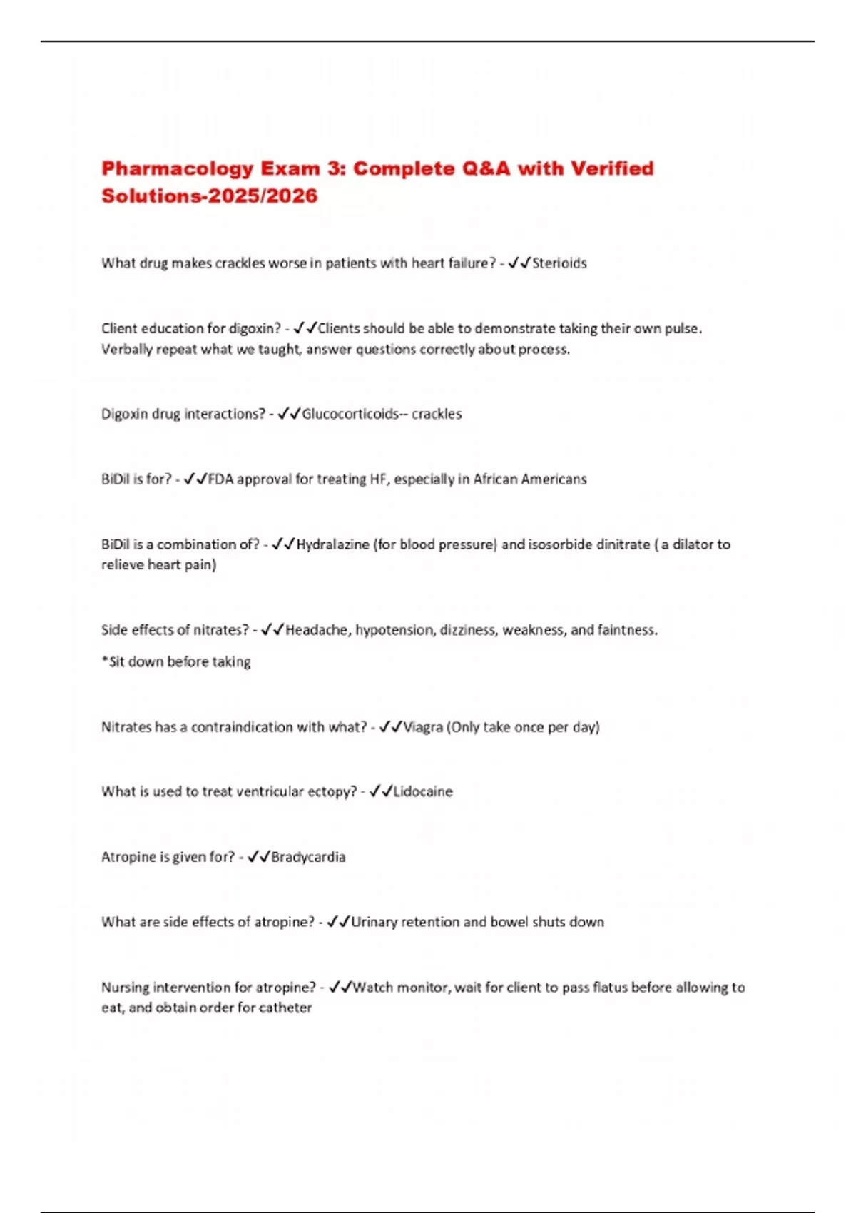 pharmacology exam 3 complete qa with verified s