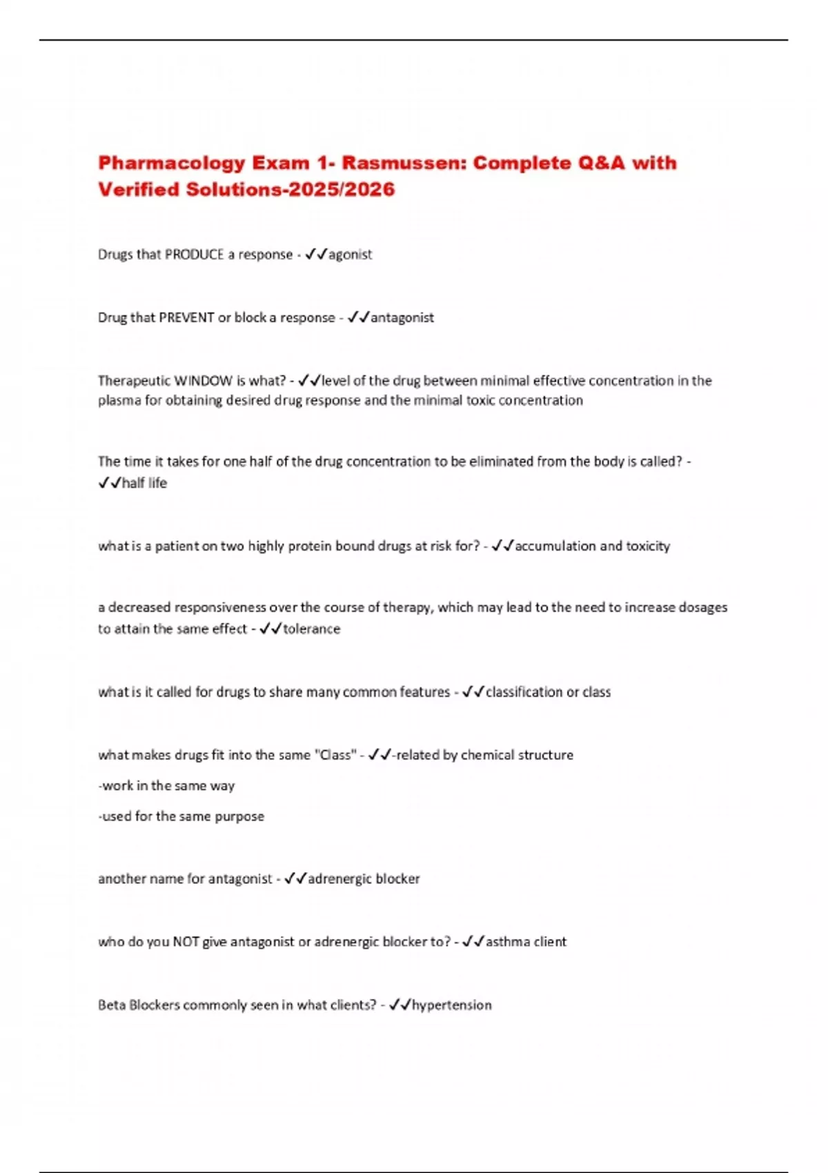 Pharmacology Exam 1- Rasmussen: Complete Q&A with Verified Solutions-2025/2026
