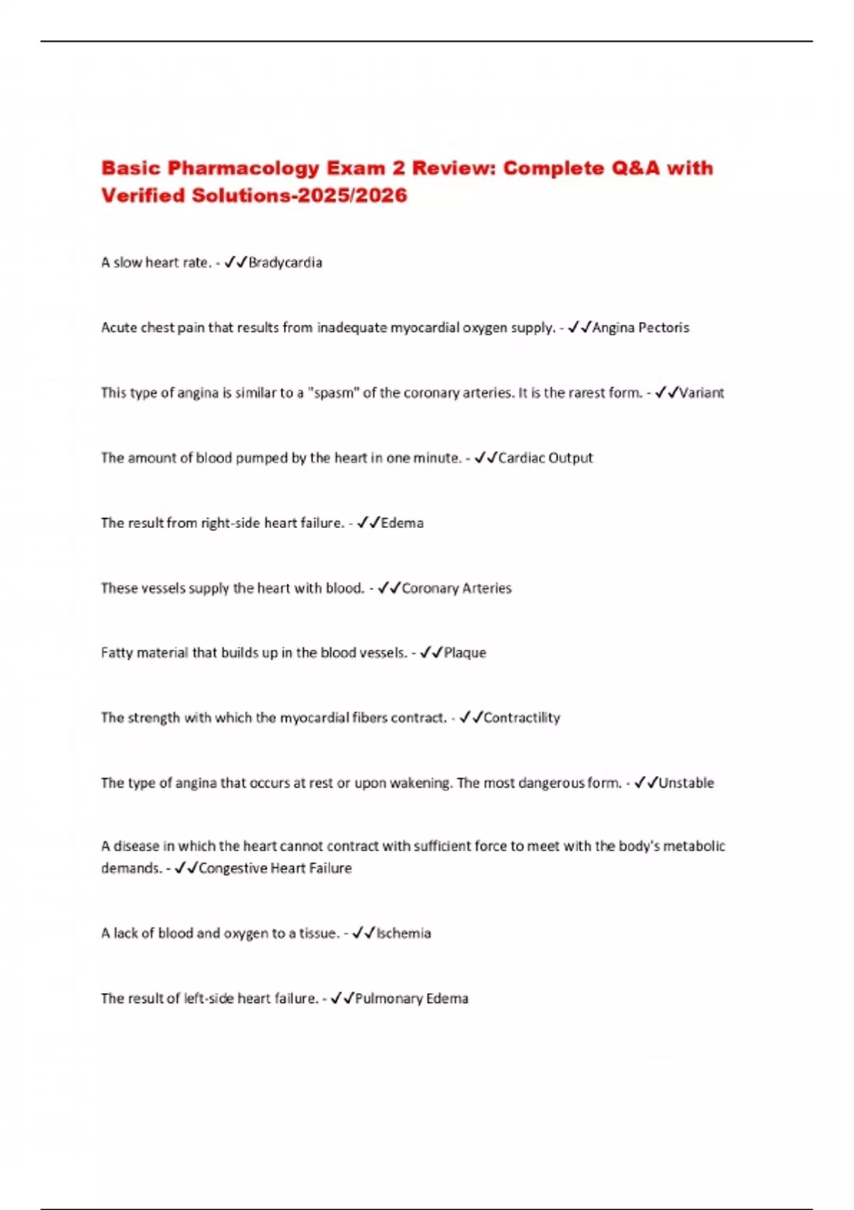 Basic Pharmacology Exam 2 Review: Complete Q&A with Verified Solutions-2025/2026