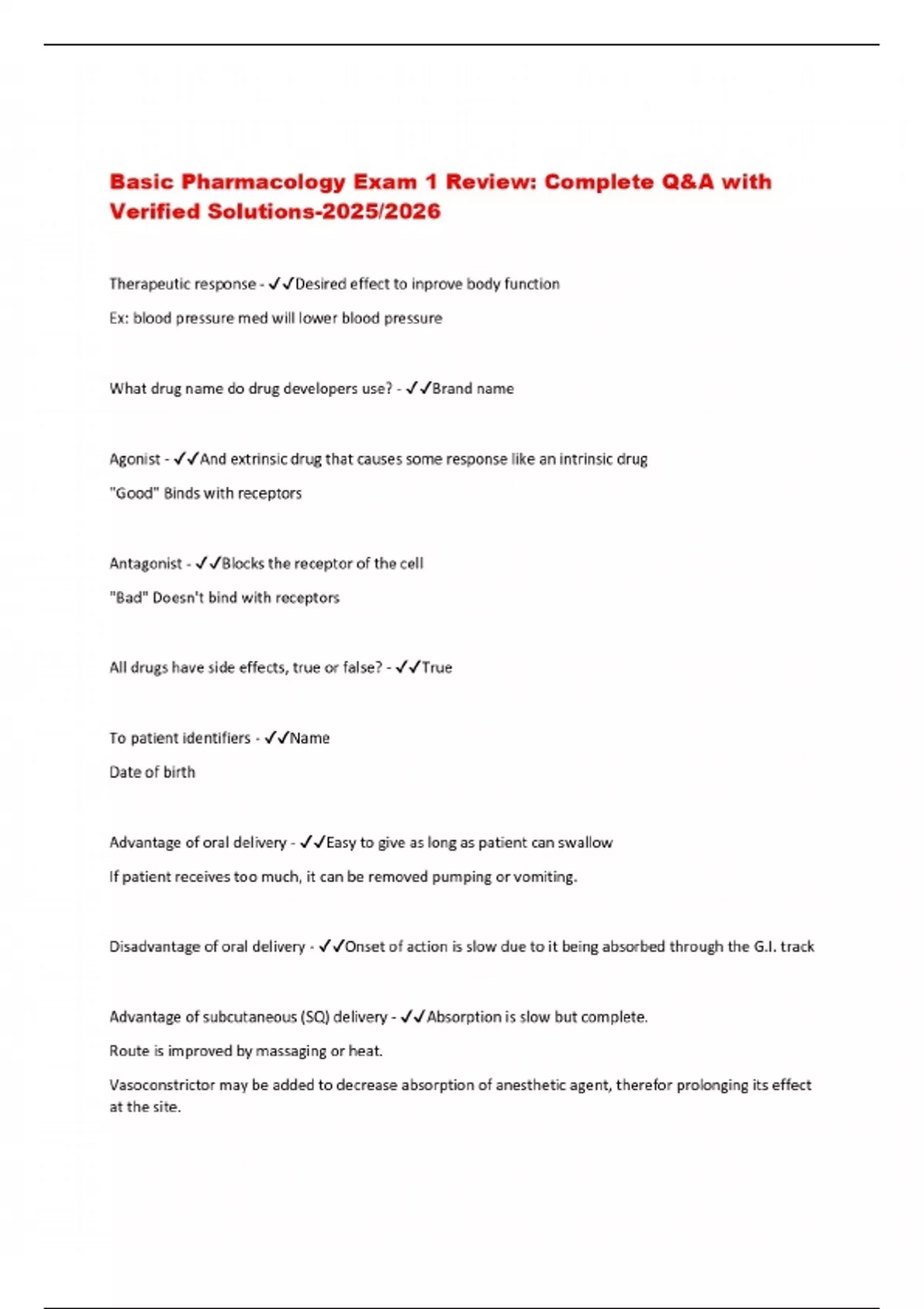 Basic Pharmacology Exam 1 Review: Complete Q&A with Verified Solutions-2025/2026