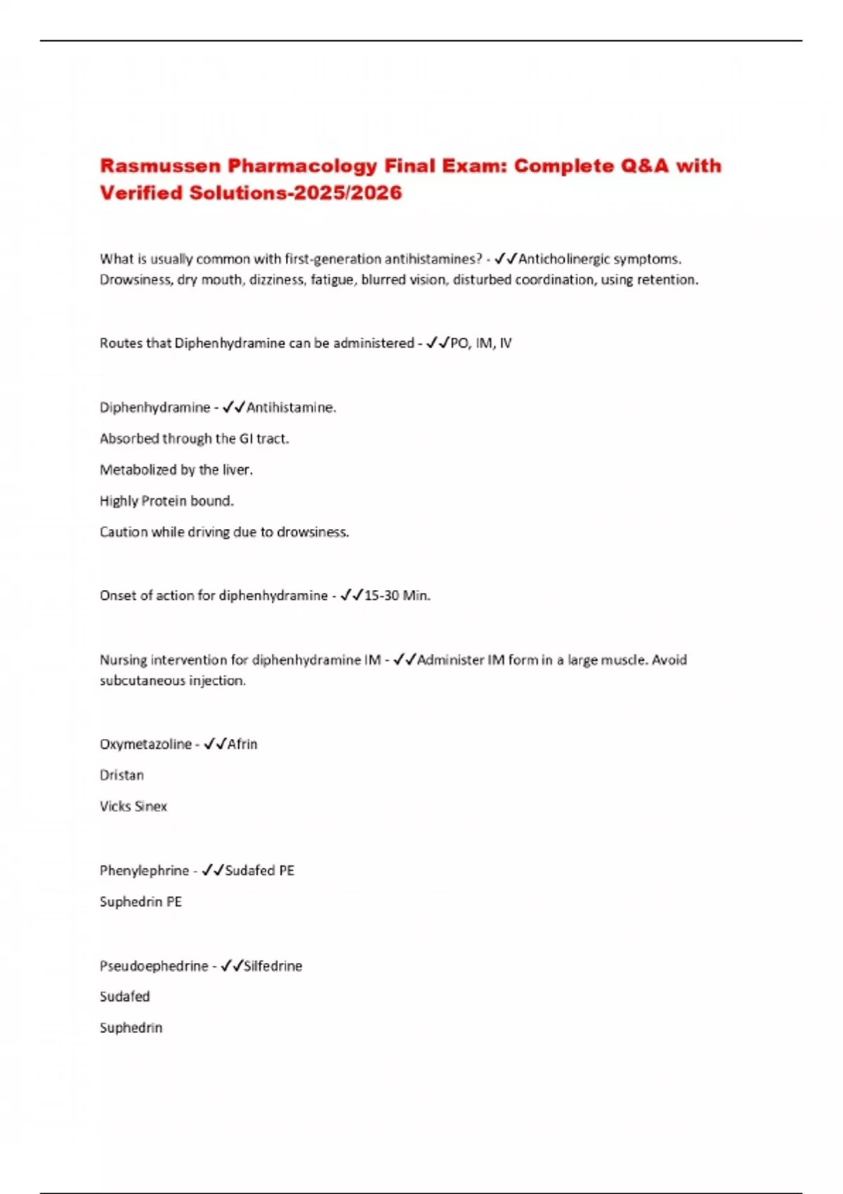 Rasmussen Pharmacology Final Exam: Complete Q&A with Verified Solutions-2025/2026