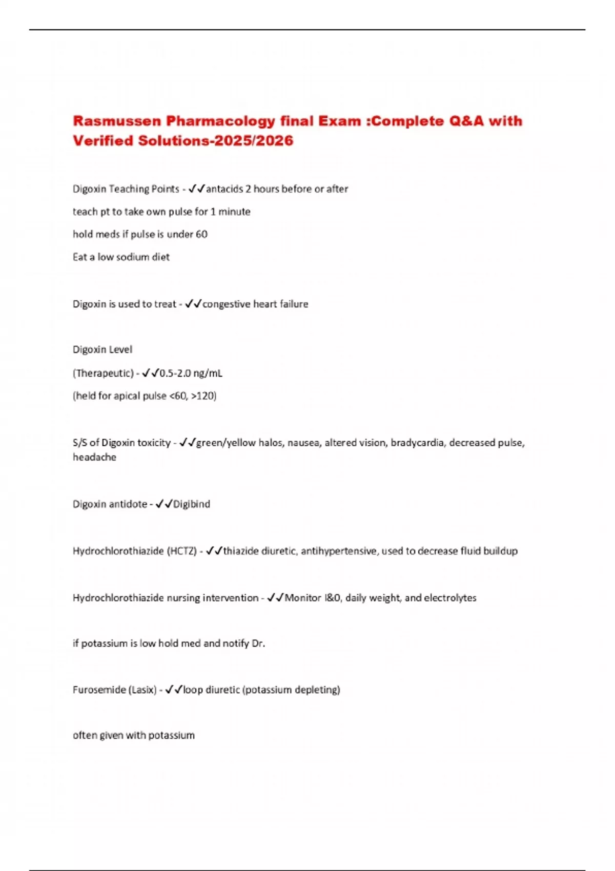 Rasmussen Pharmacology final Exam :Complete Q&A with Verified Solutions-2025/2026