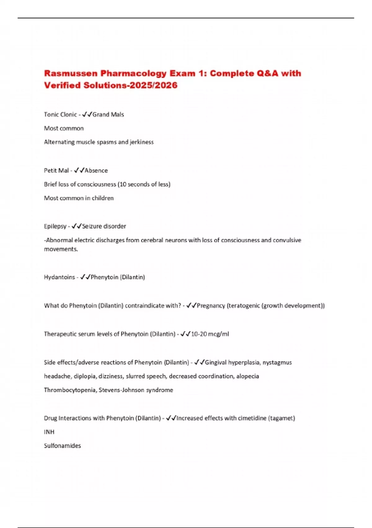 Rasmussen Pharmacology Exam 1: Complete Q&A with Verified Solutions-2025/2026